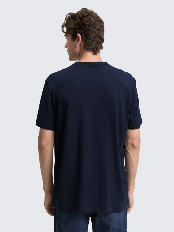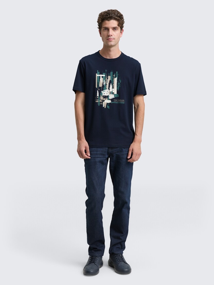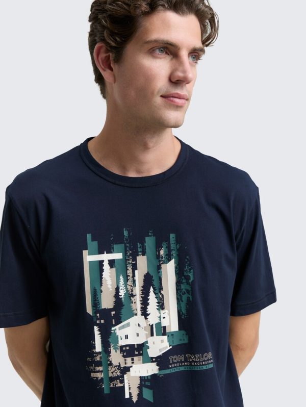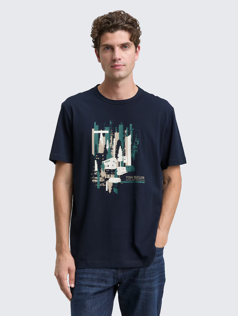 Conhecida por seu estilo urbano e design incomum, a Tom Tailor incorpora detalhes inovadores. Combinados com silhuetas inspiradas em streetwear e uma estética jovial. Assim é esta t-shirt azul escuro c/ estampa da Tom Tailor. Tem manga curta e decote redondo. Combina na perfeição com jeans, mas dentro do mesmo estilo.