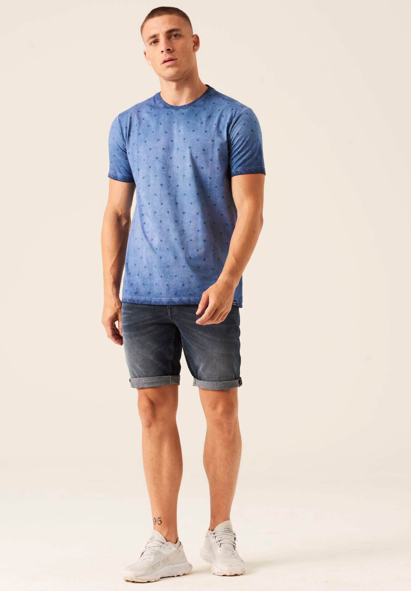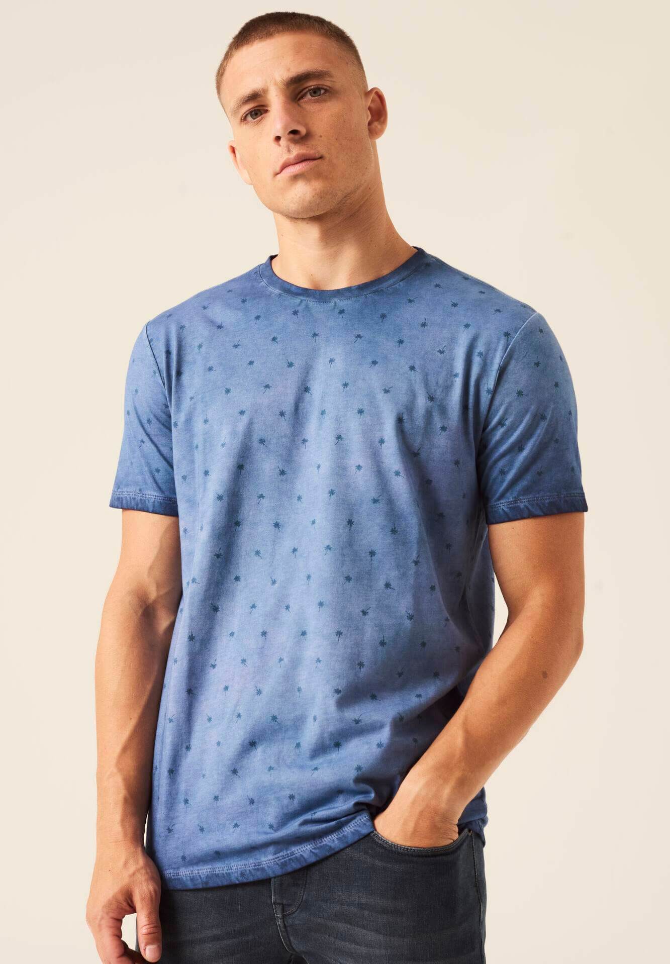 A Garcia Jeans foi lançada em 1977, pelas mãos de Maurizio e Isabella Gracia, oferece produtos de qualidade superior, que contam histórias através das suas coleções. Assim é esta t-shirt azul lavado c/ palmeiras da Garcia. Tem manga curta e decote redondo. Combina com calça de sarja para baixo. O manequim está a vestir o tamanho S.