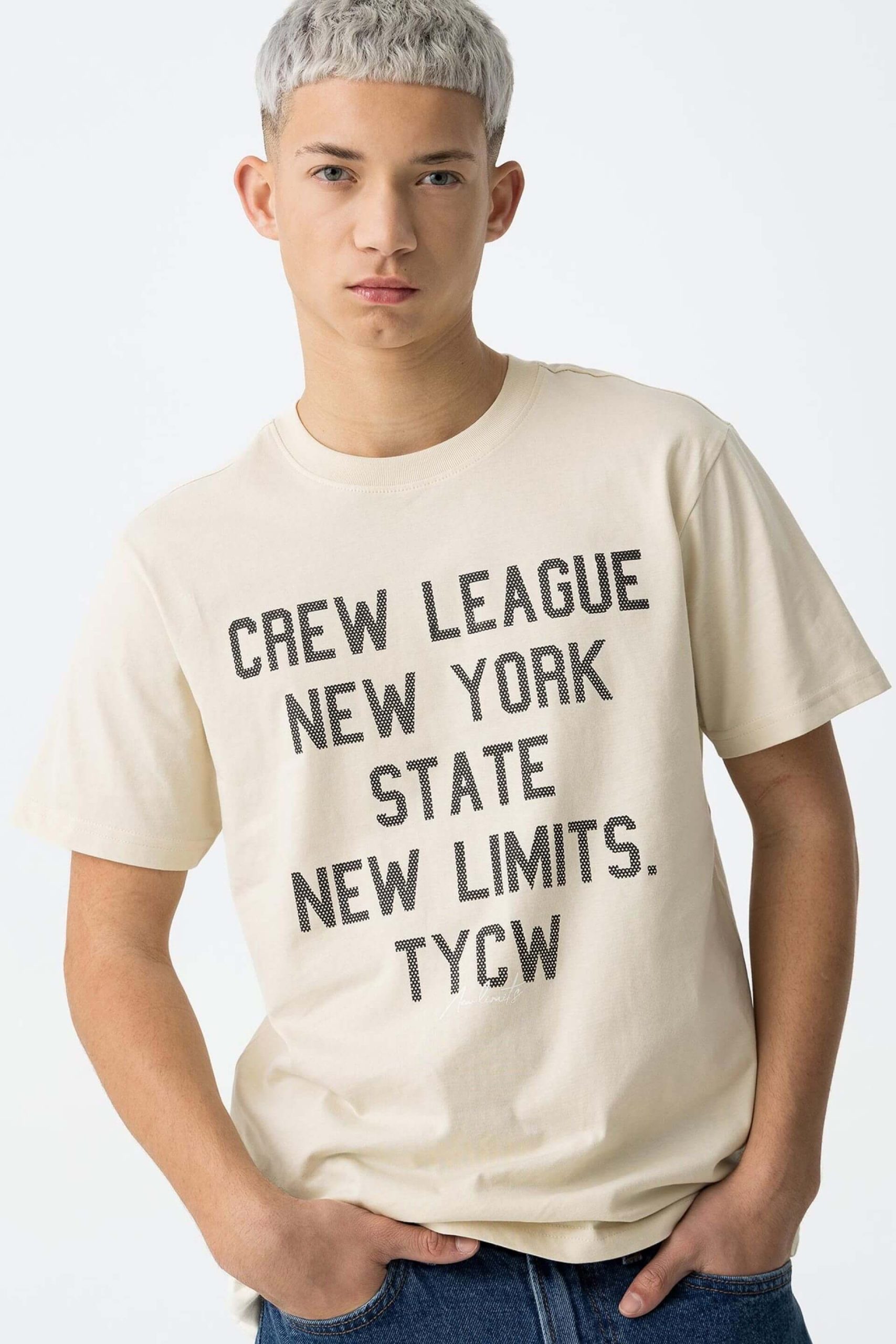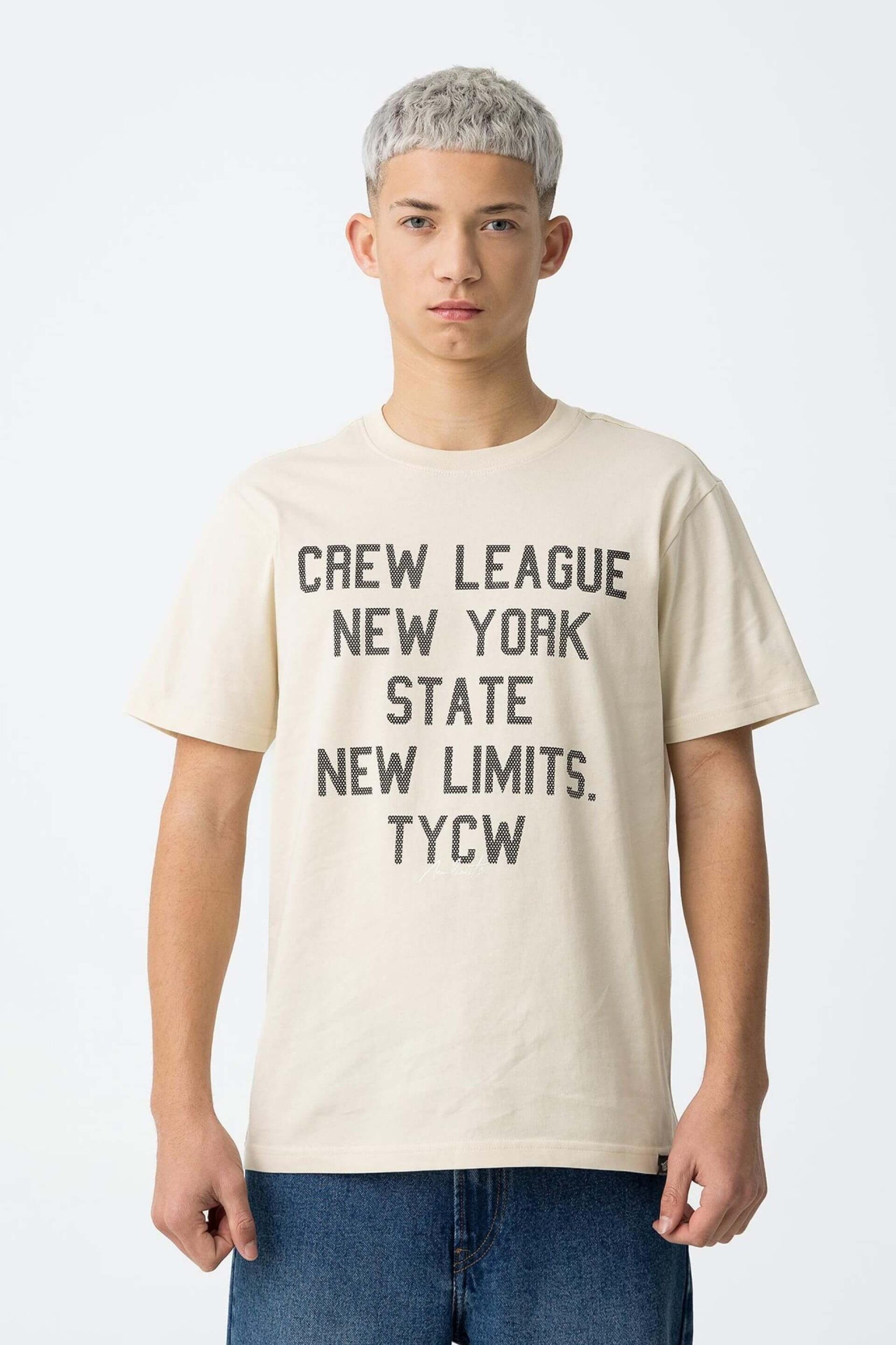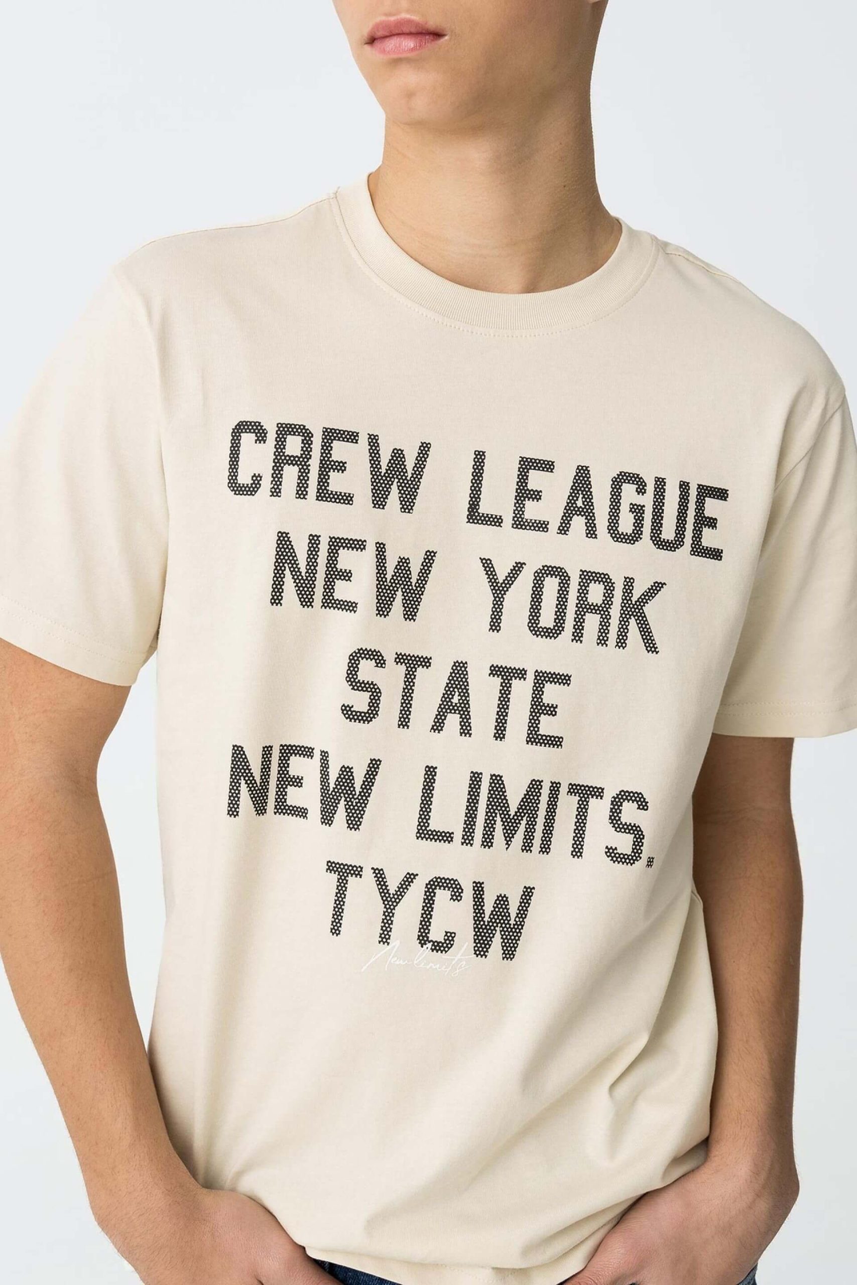 Conhecida por seu estilo urbano e design incomum, a Tiffosi incorpora detalhes inovadores. Combinados com silhuetas inspiradas em streetwear e uma estética jovial. Assim é esta t-shirt bege c/ estampa da Tiffosi. Tem decote redondo e manga curta. Para parte de baixo combina na perfeição com jeans, mas dentro do mesmo estilo. A imagem está no tamanho S / 164 cm.