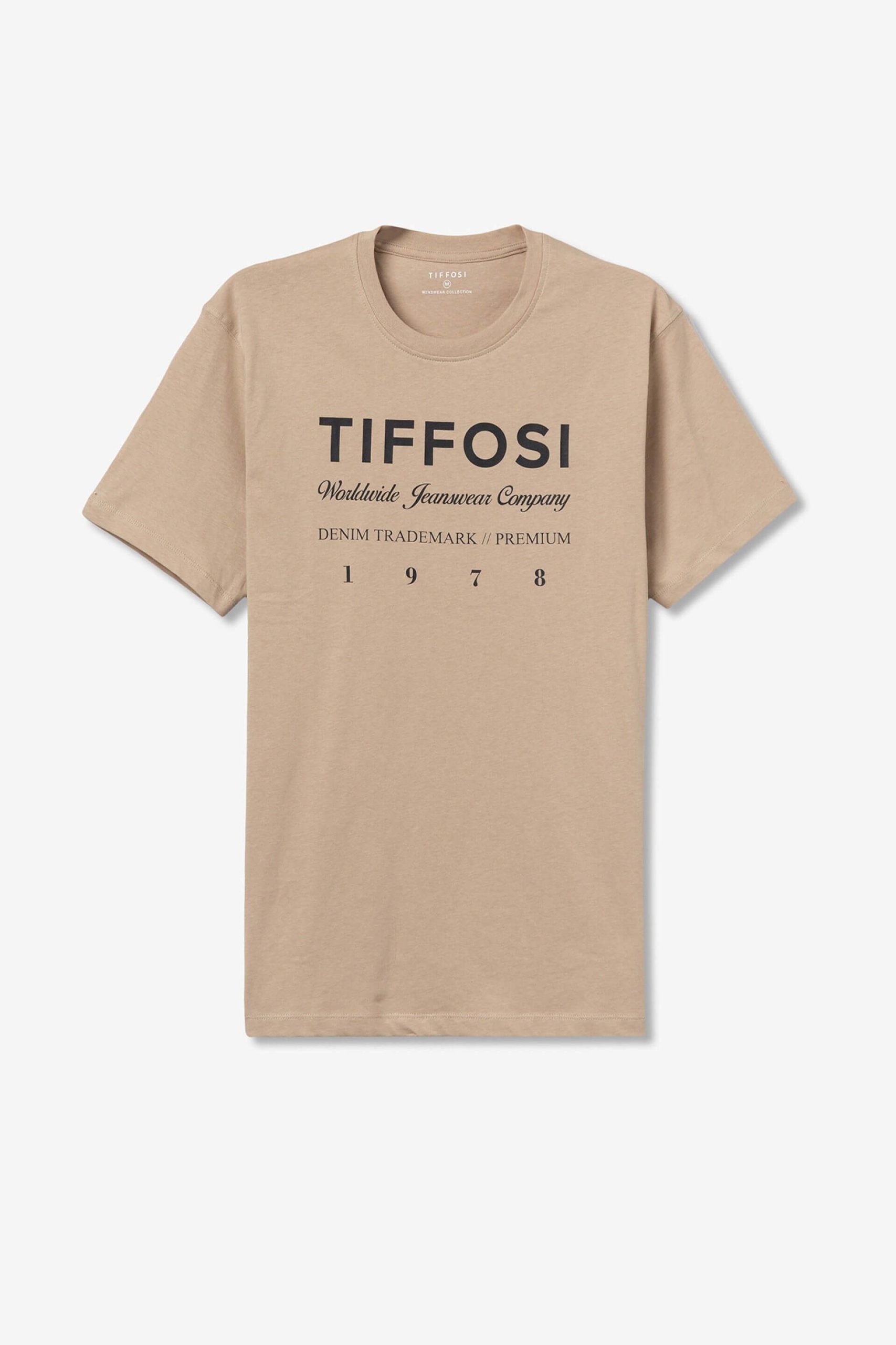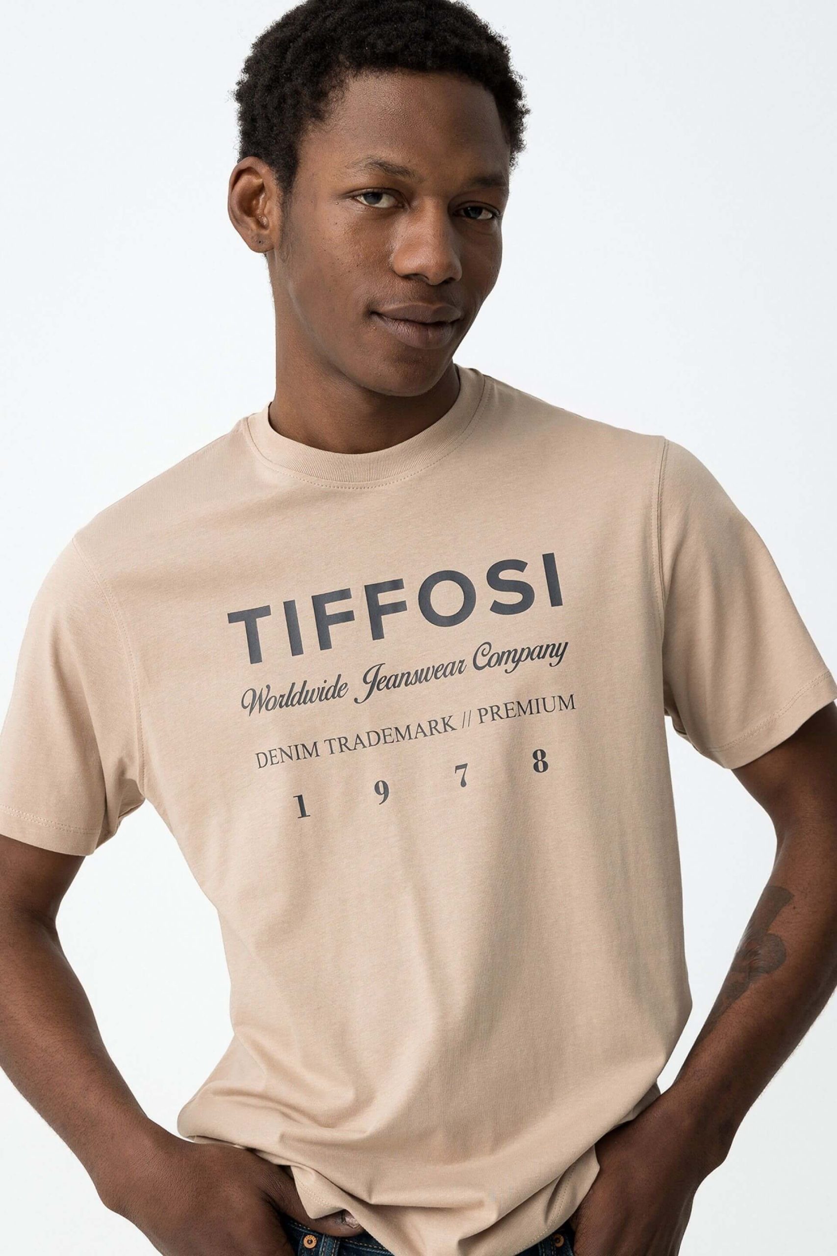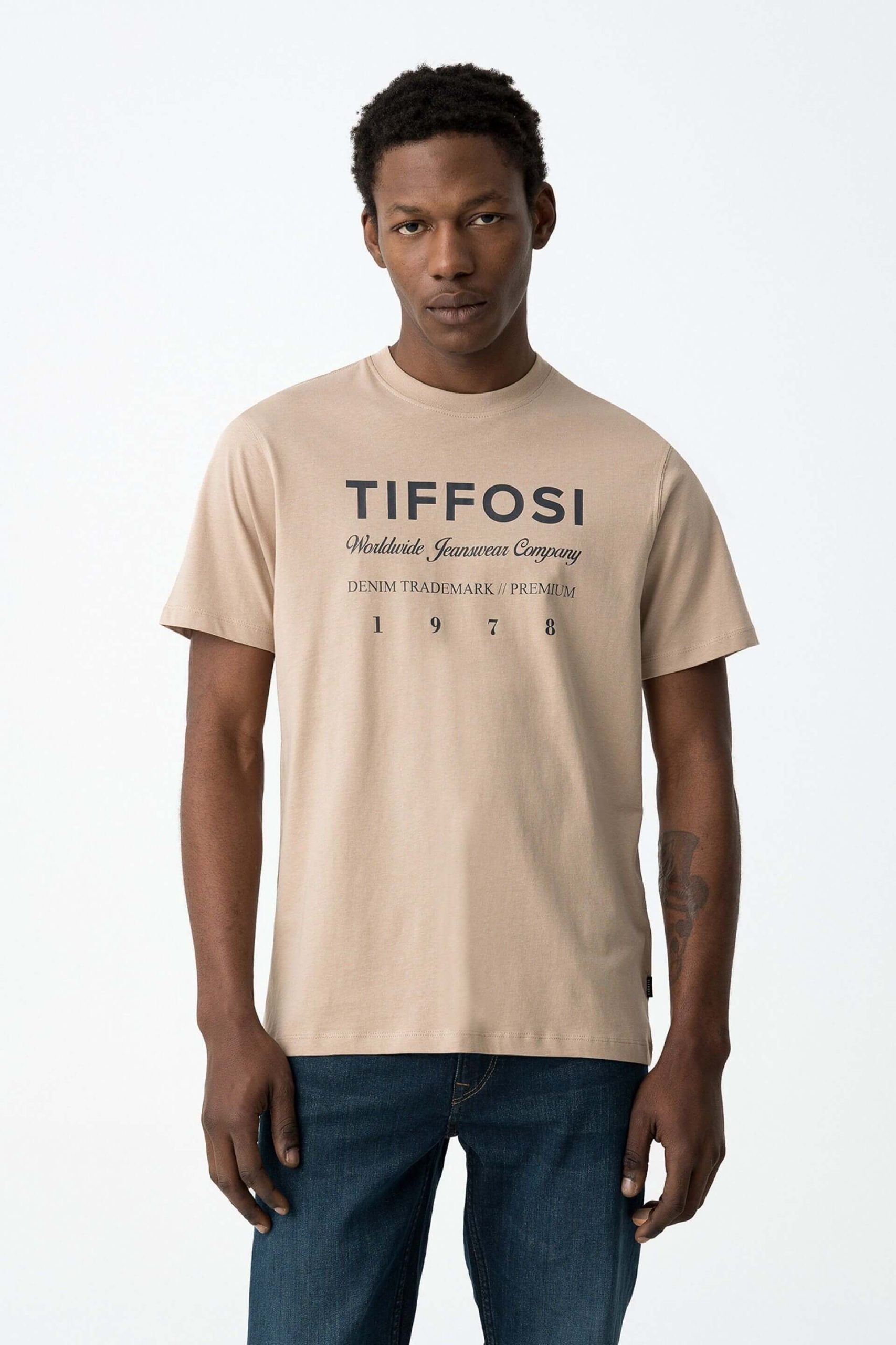 Conhecida por seu estilo urbano e design incomum, a Tiffosi incorpora detalhes inovadores. Combinados com silhuetas inspiradas em streetwear e uma estética jovial. Assim é esta t-shirt bege c/ logo da Tiffosi. Tem manga curta e decote redondo. Para parte de baixo combina na perfeição com jeans, mas dentro do mesmo estilo. O modelo está a vestir o M.