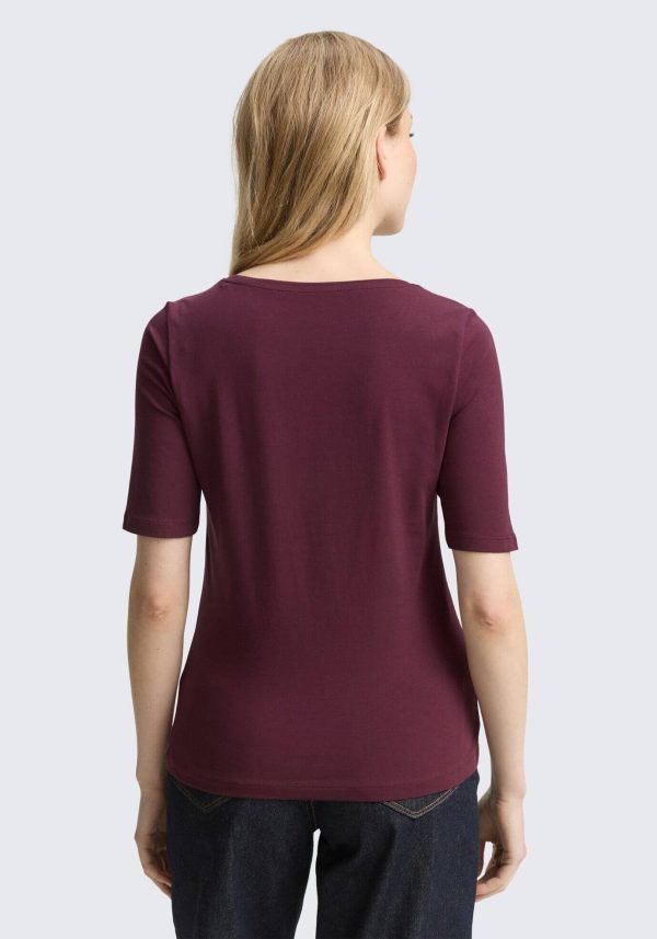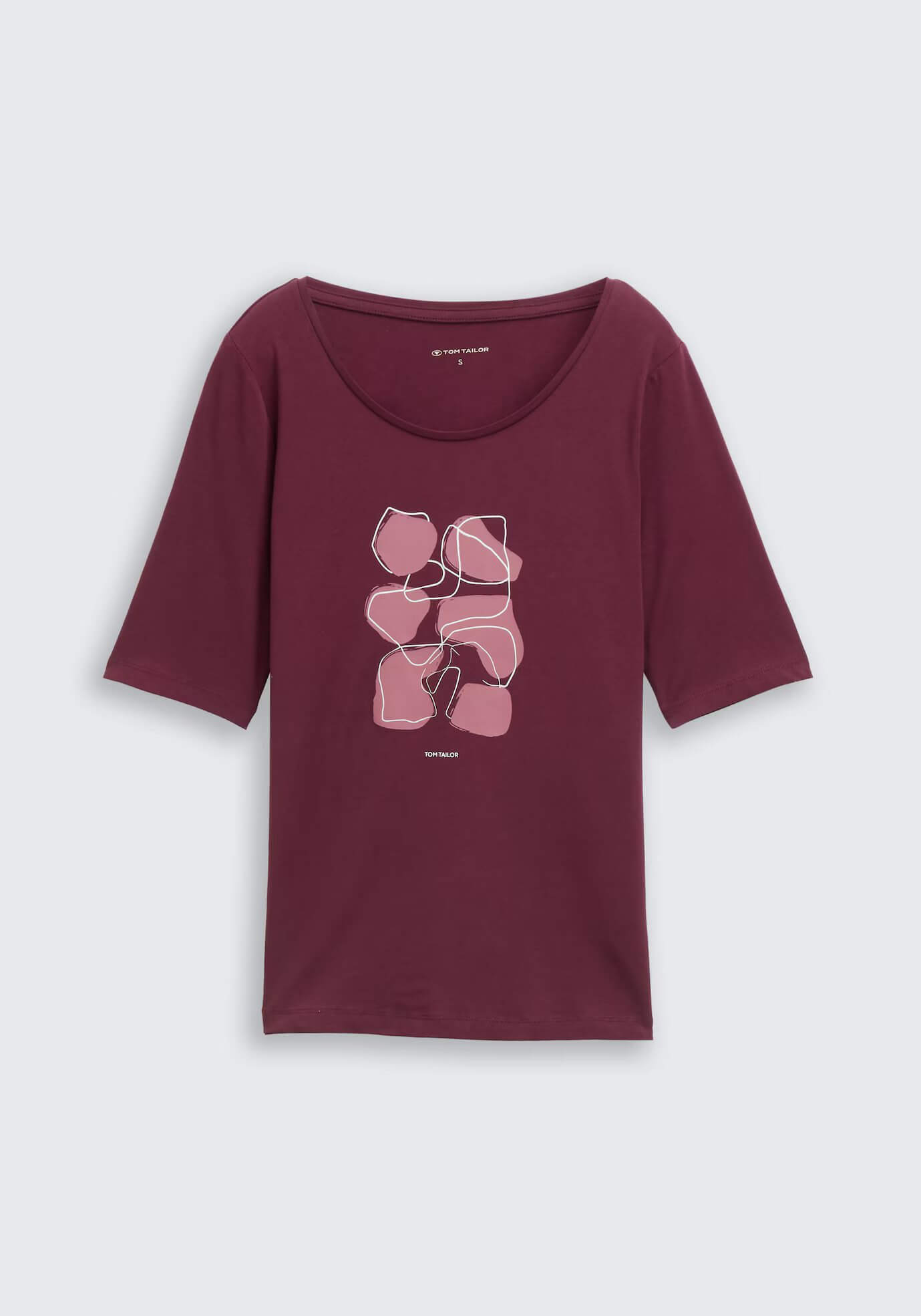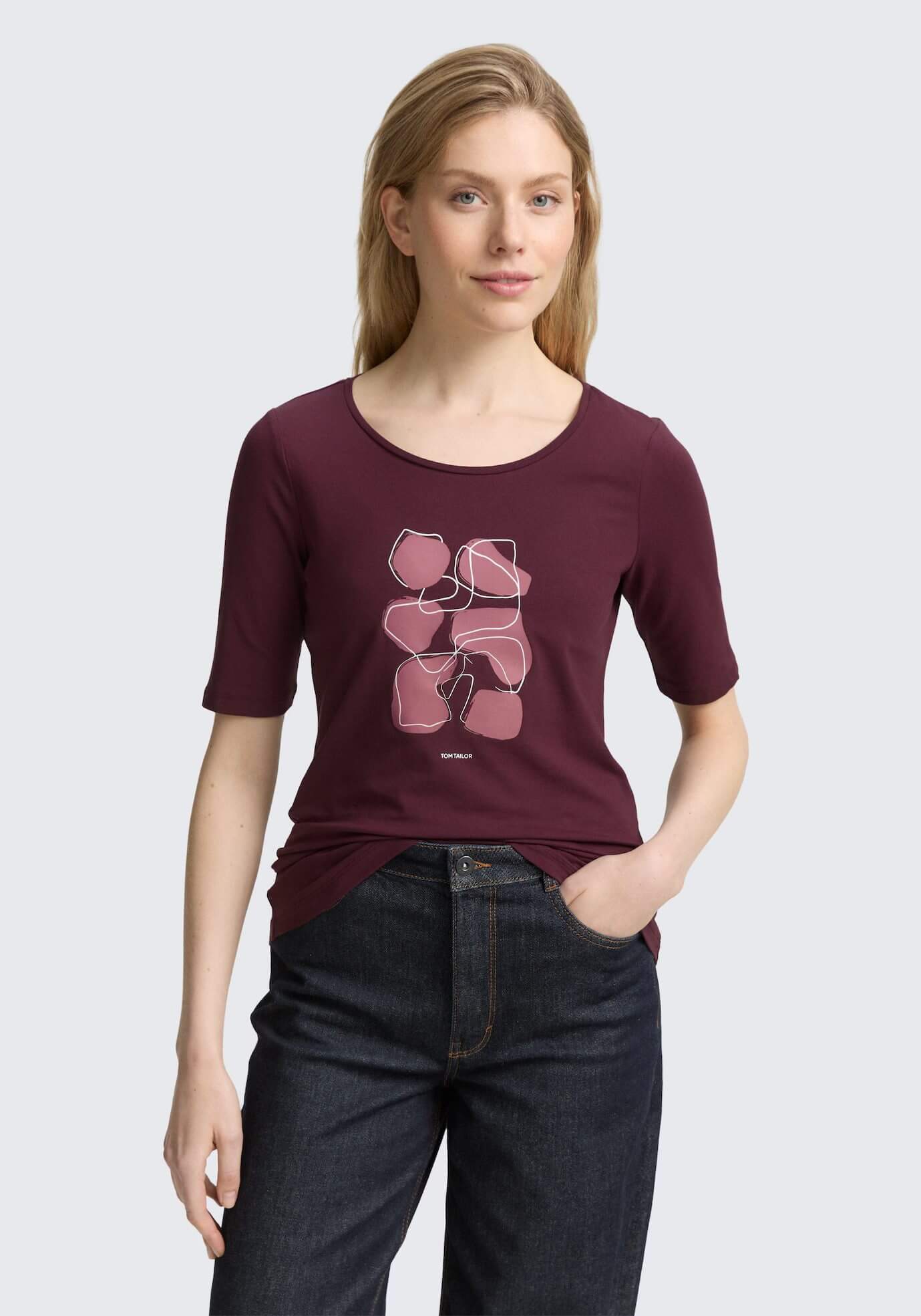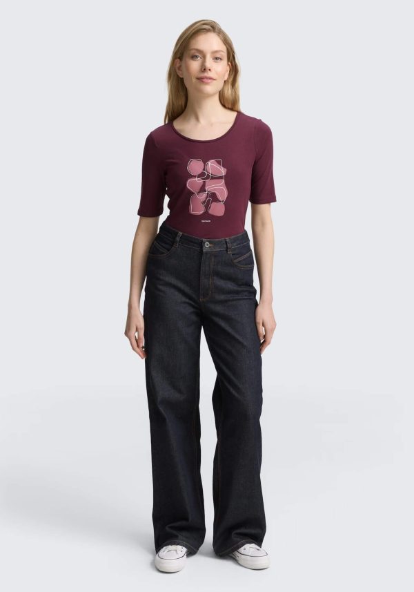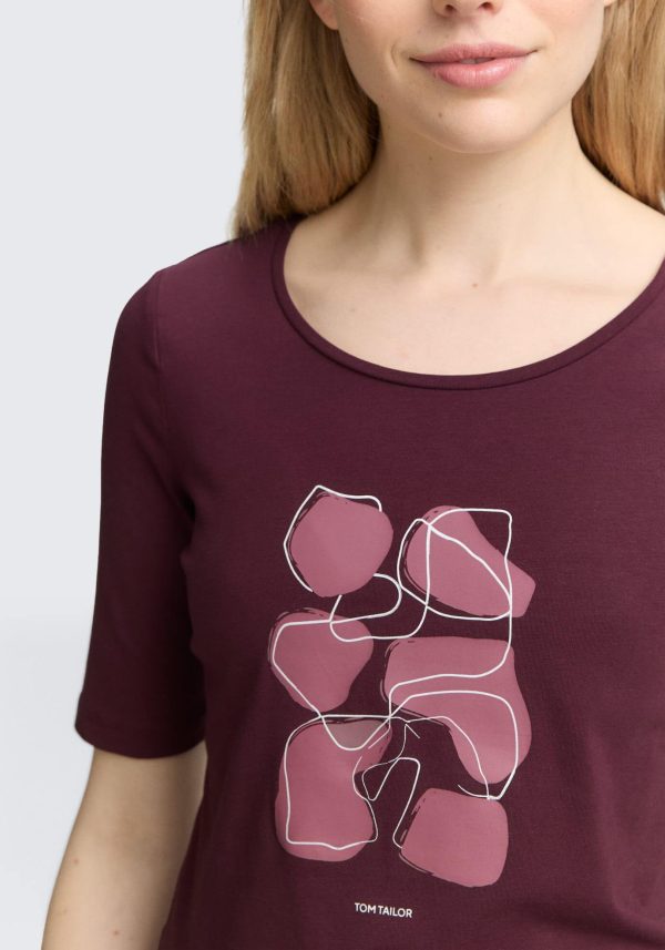 Conhecida por seu estilo urbano e design incomum, a Tom Tailor incorpora detalhes inovadores. Combinados com silhuetas inspiradas em streetwear e uma estética jovial. Assim é esta t-shirt bordô c/ estampa da Tom Tailor. Apresenta decote redondo e manga curta. Para parte de baixo combina na perfeição com calça, mas dentro do mesmo estilo. A modelo está a vestir o tamanho S.