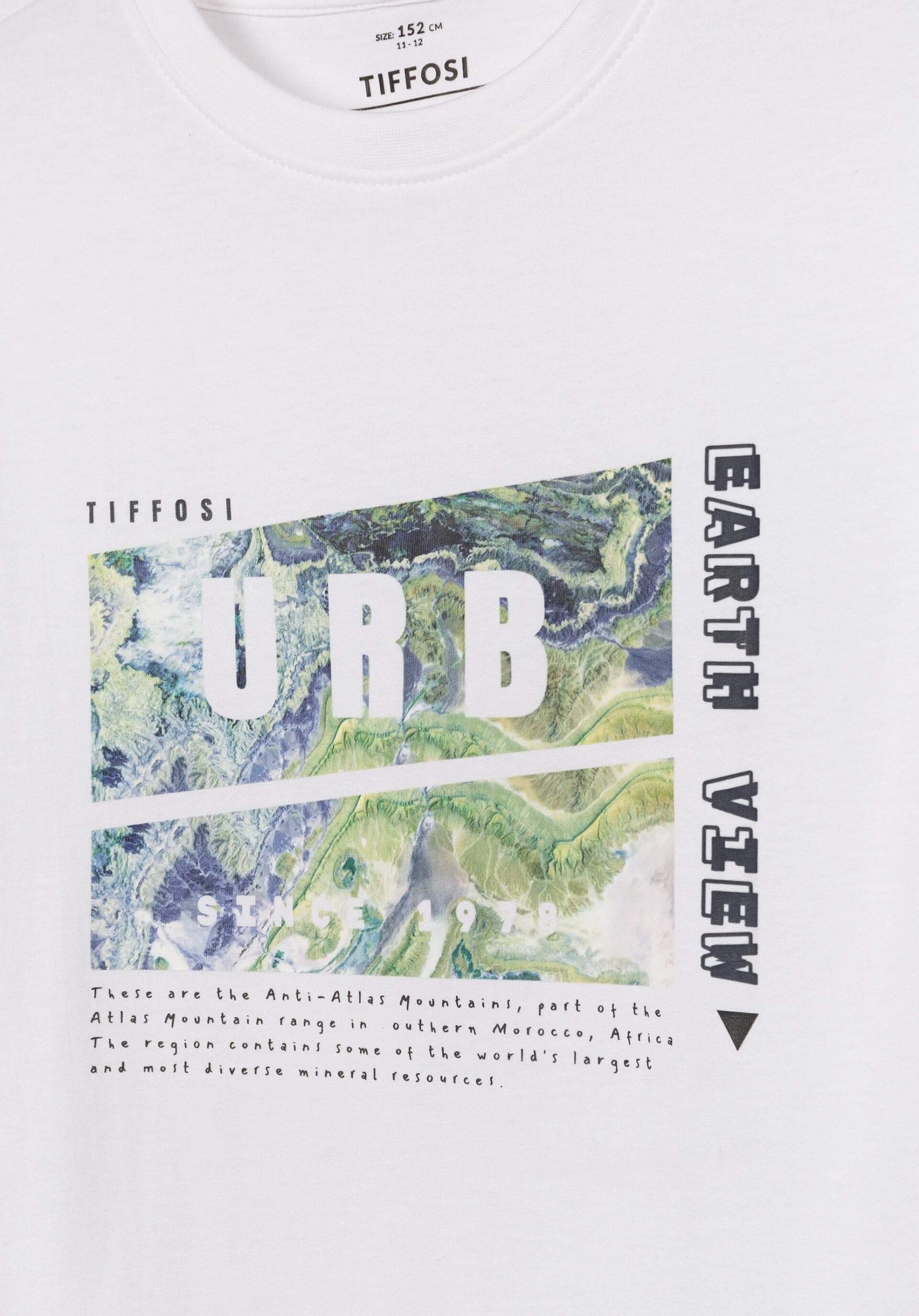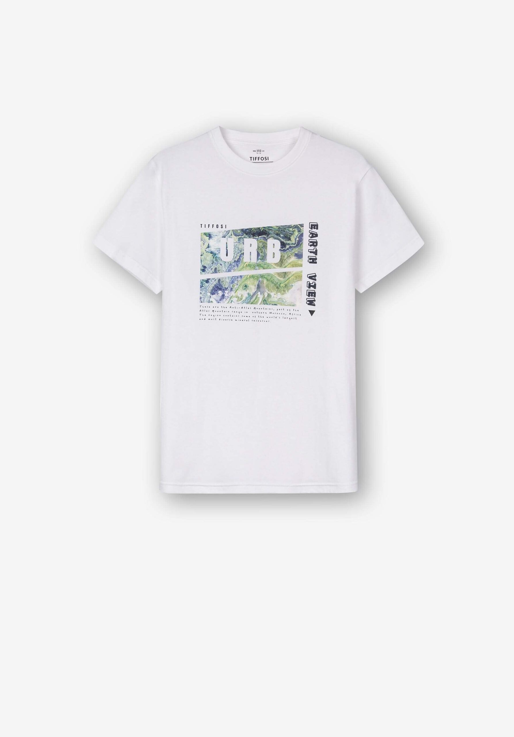 Pense em silhuetas dos anos 80, painéis pesados, denim super skinny e estampas de bandana. Pois bem essa era voltou aos dias de hoje. Conhecida por seu estilo urbano e design incomum, a Tiffosi incorpora detalhes nativos portugueses. Assim é esta t-shirt branca urb da Tiffosi. Com manga curta e decote redondo. Para parte de baixo combina na perfeição com calças mas a dar com o tom. A imagem está no tamanho 9-10 anos /140 cm.