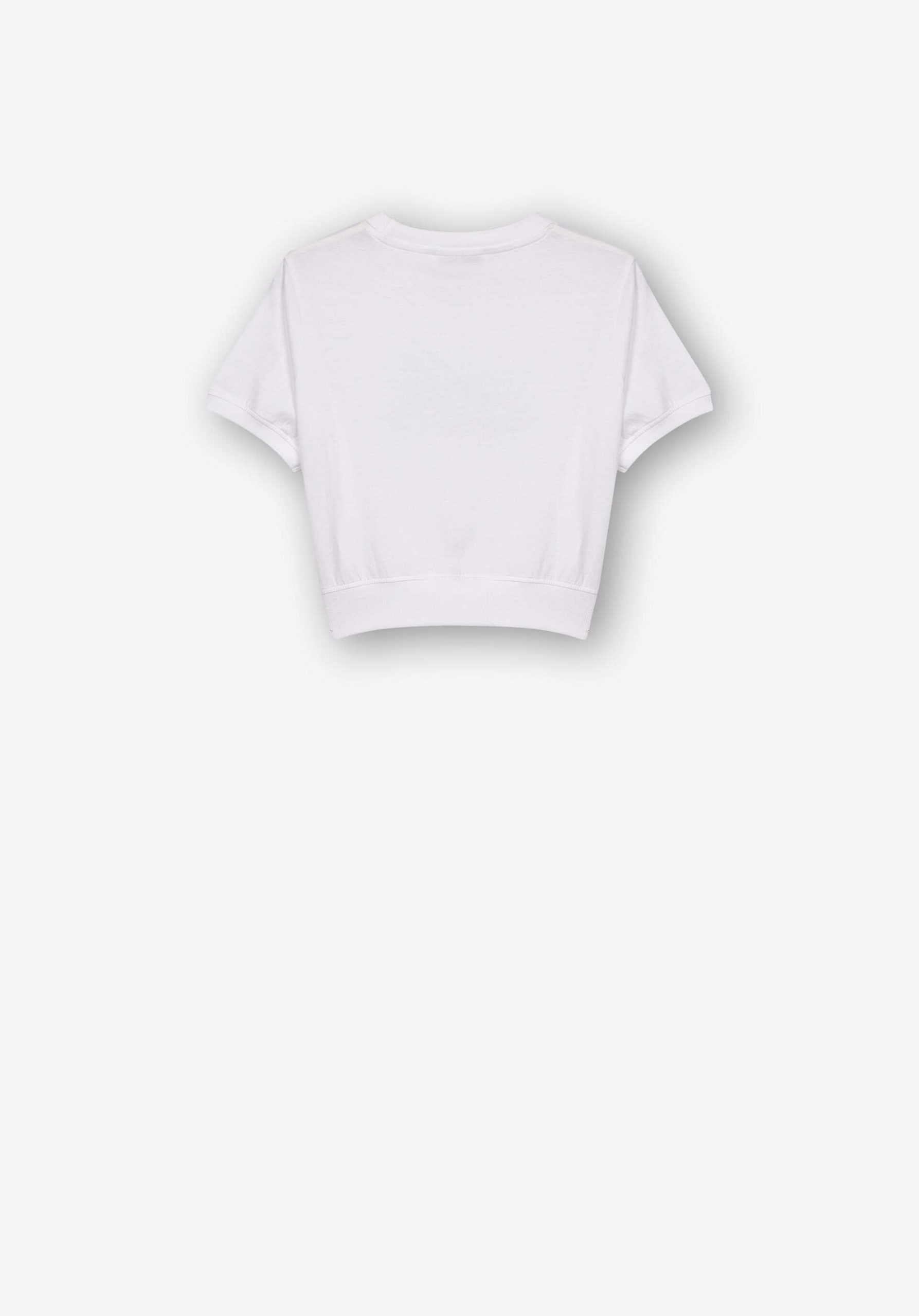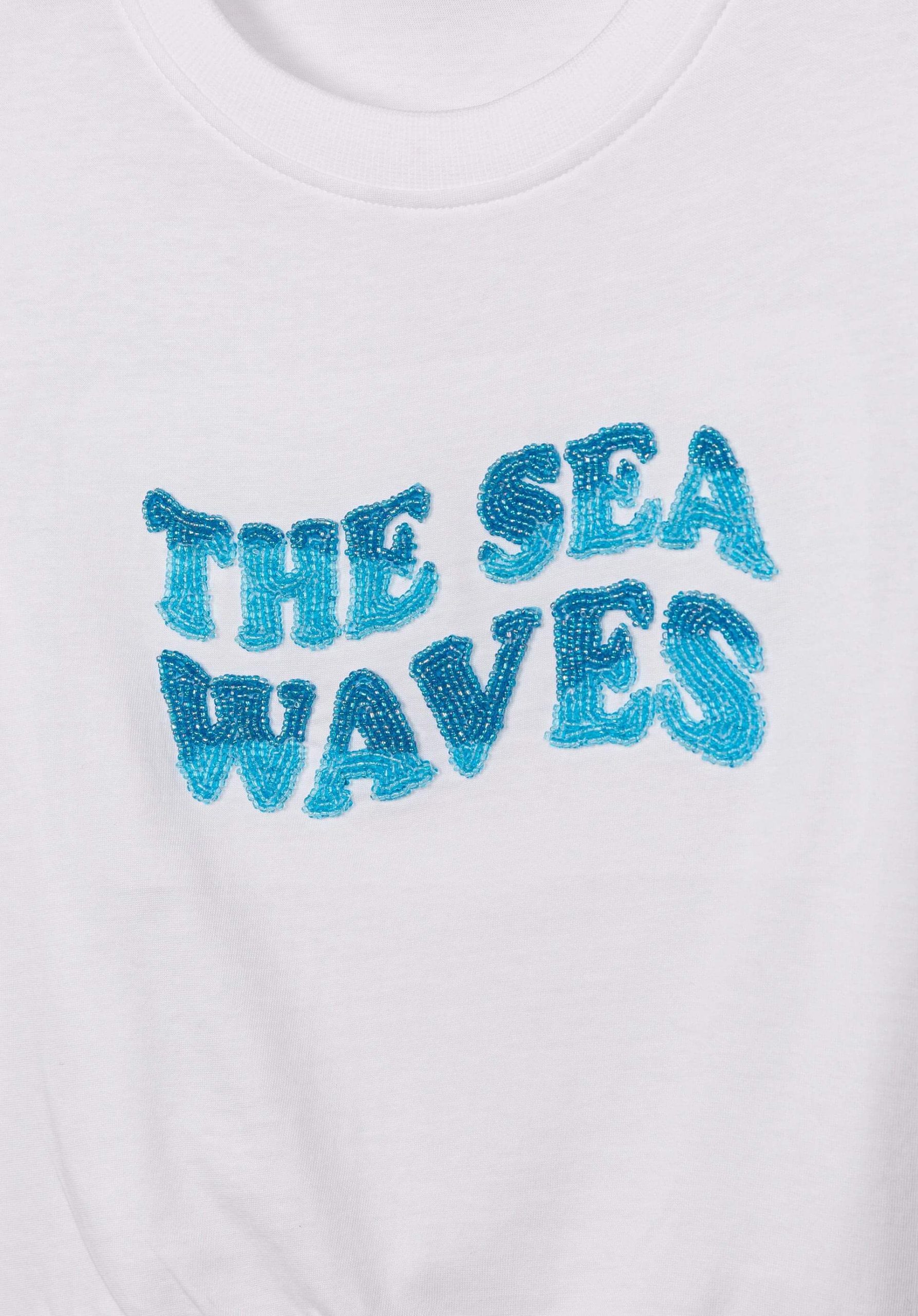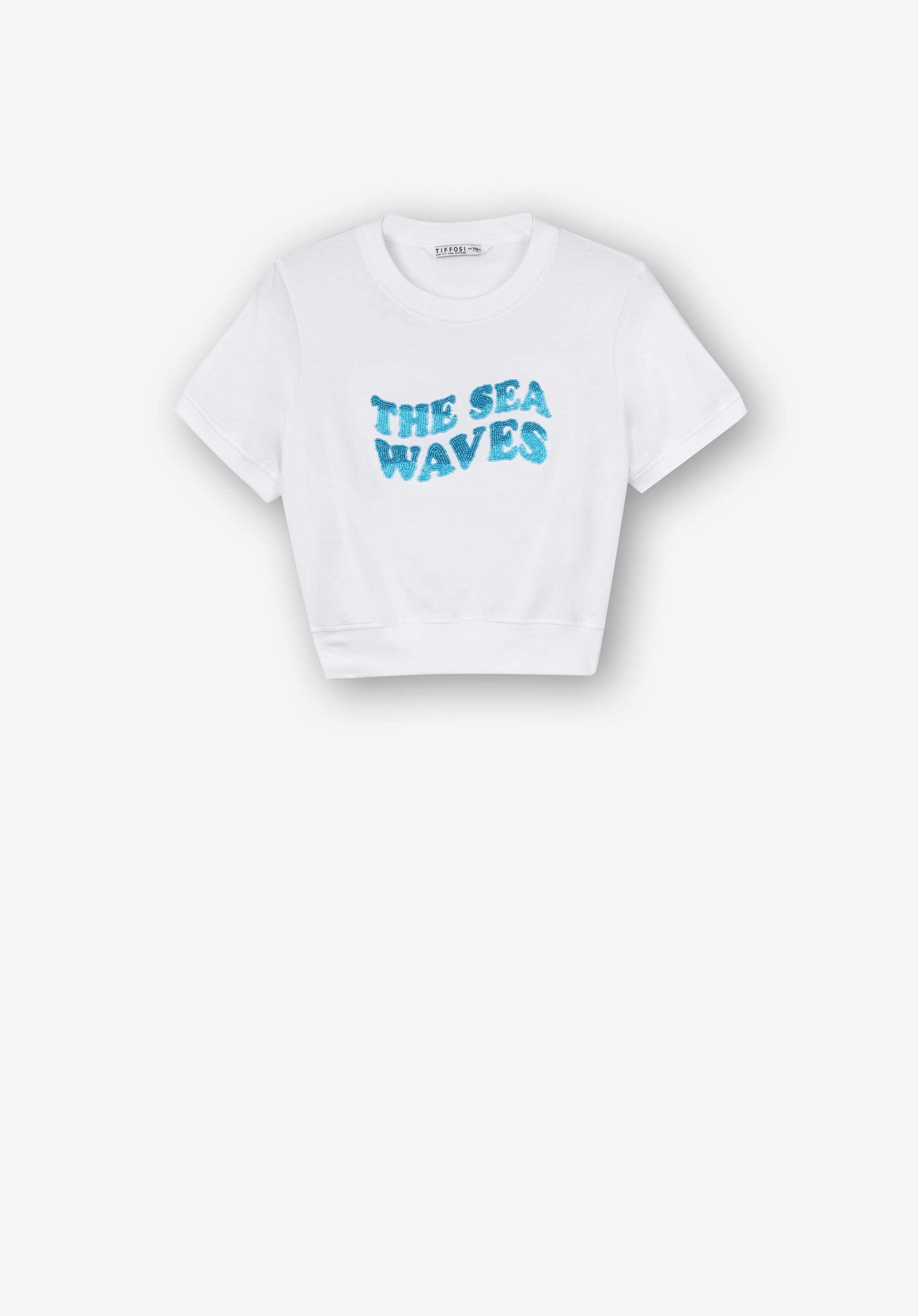 Pense em silhuetas dos anos 80, denim super skinny e estampas de bandana. Pois bem essa era voltou aos dias de hoje. Assim é esta t-shirt branca waves da Tiffosi. Tem manga a curta e decote redondo. Para parte de baixo combina na perfeição com jeans mas a dar com o tom. A imagem está no tamanho 9-10 anos /140 cm.
