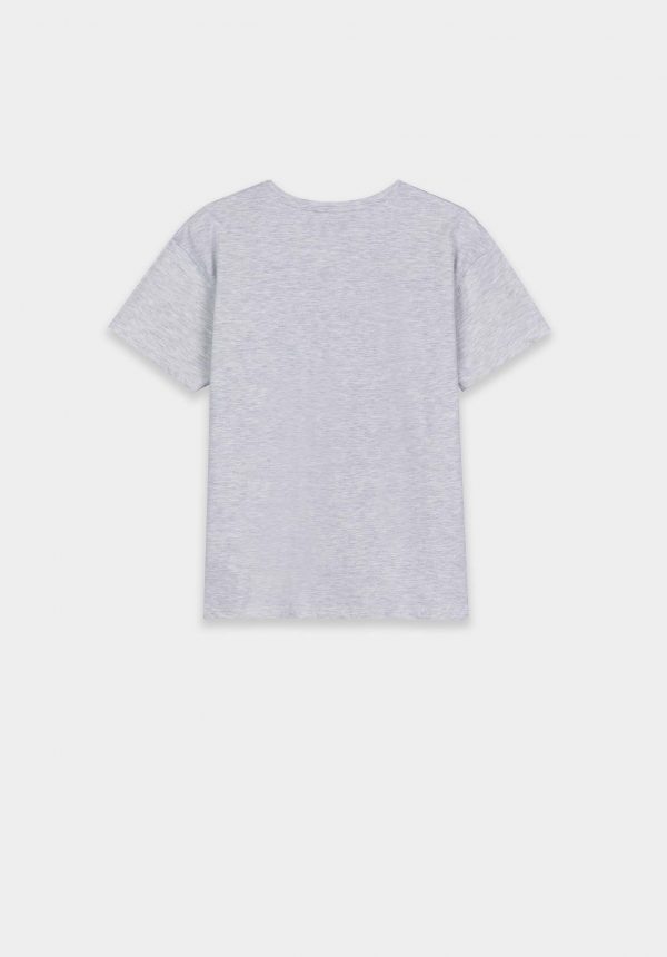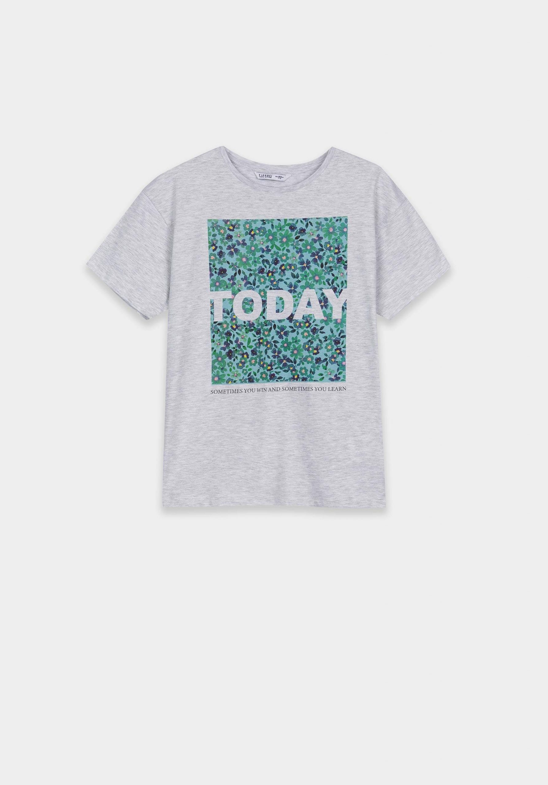 Conhecida por seu estilo urbano e design incomum, a Tiffosi incorpora detalhes inovadores. Combinados com silhuetas inspiradas em streetwear e uma estética jovial. Assim é esta t-shirt cinza c/ estampa verde da Tiffosi. Tem decote redondo e manga curta. Para parte de baixo combina na perfeição com jeans, mas dentro do mesmo estilo. O modelo está no tamanho 9-10 anos 140 cm.