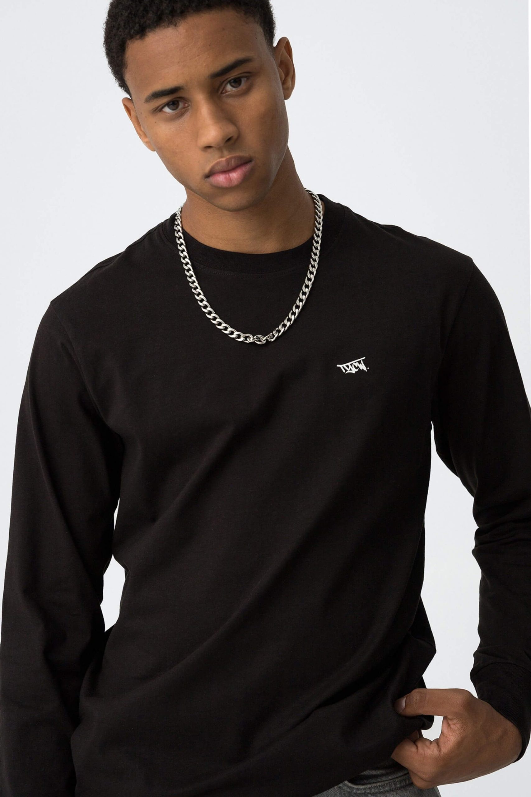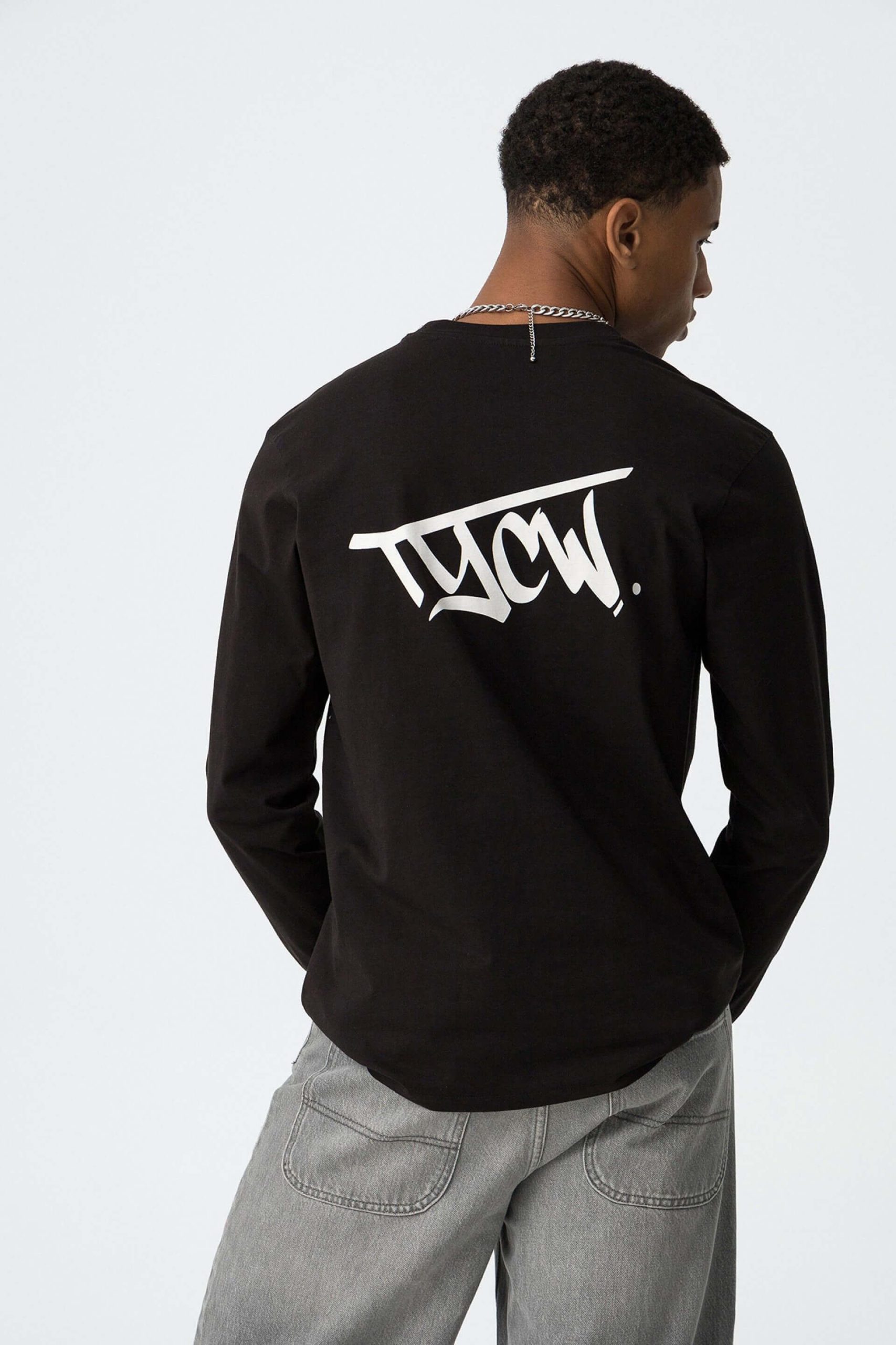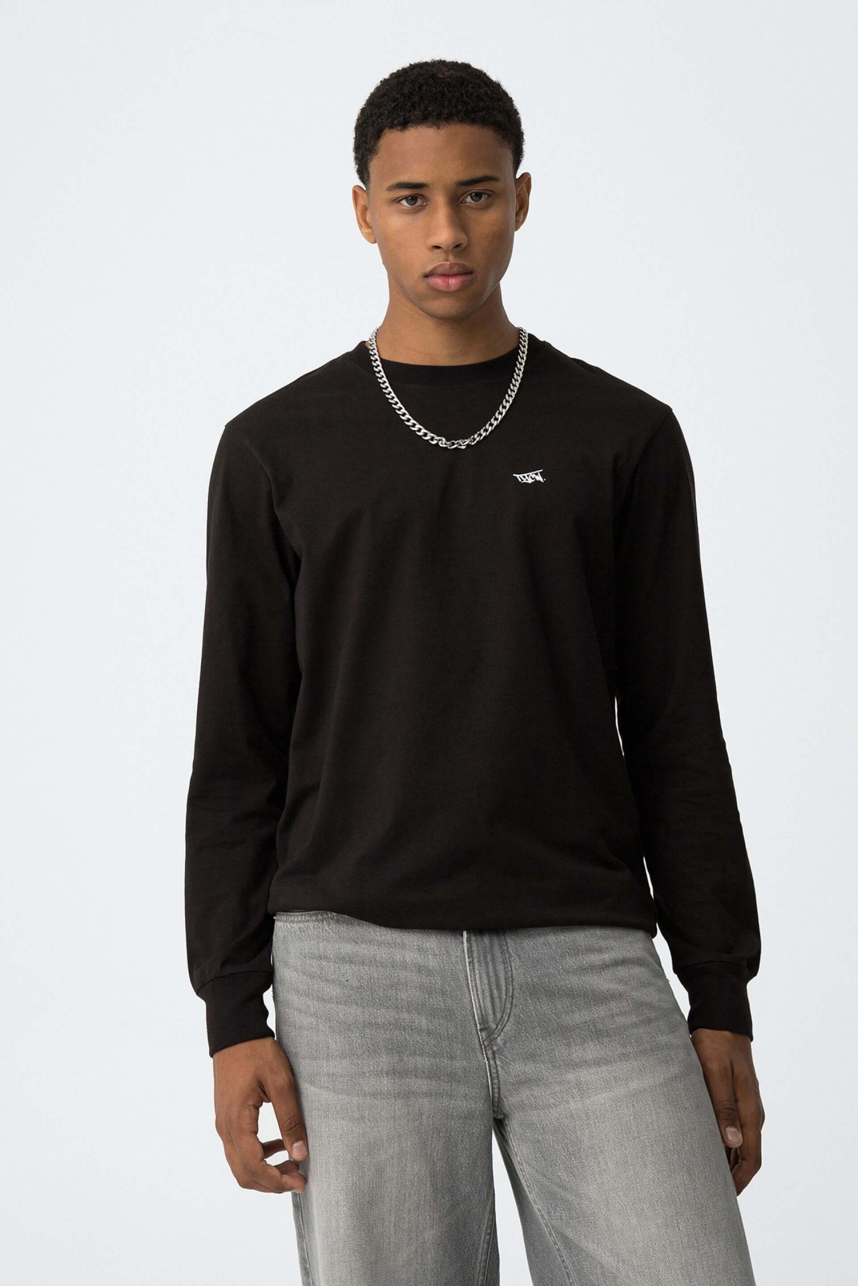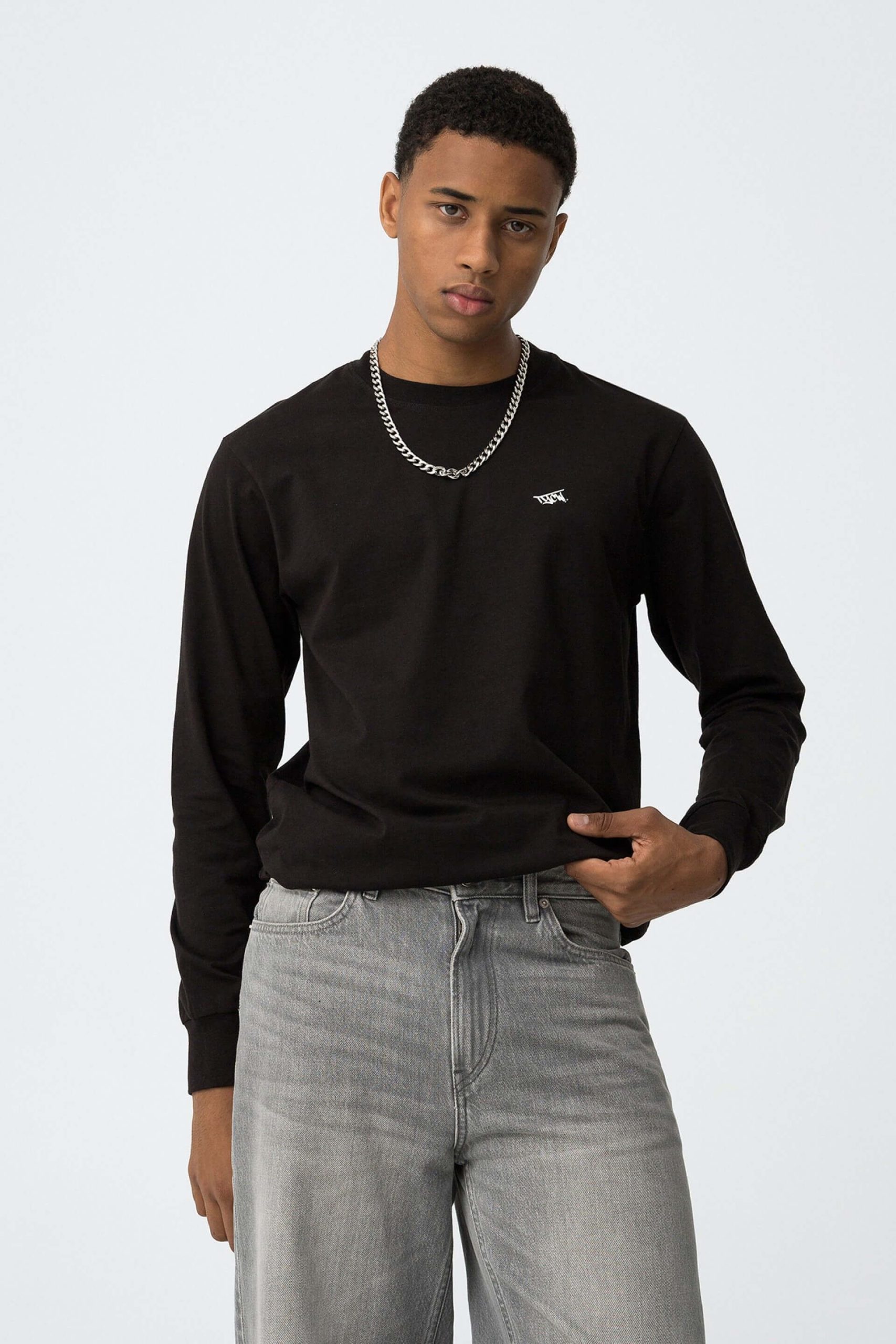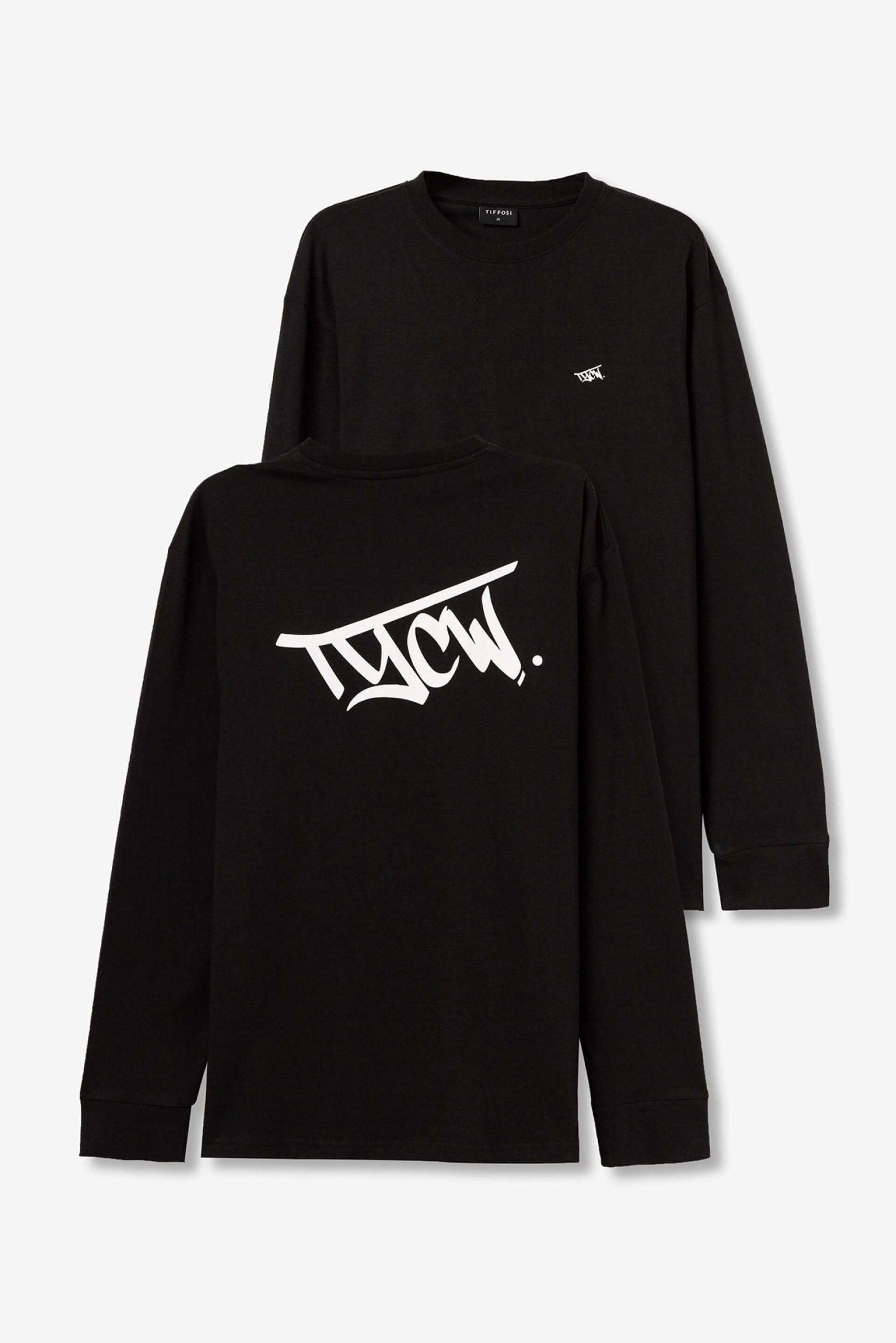 Conhecida por seu estilo urbano e design incomum, a Tiffosi incorpora detalhes inovadores. Combinados com silhuetas inspiradas em streetwear e uma estética jovial. Assim é esta t-shirt preta c/ estampa na costa da Tiffosi. Tem decote redondo e manga comprida. Para parte de baixo combina na perfeição com jeans, mas dentro do mesmo estilo. A imagem está no tamanho M / 164 cm.