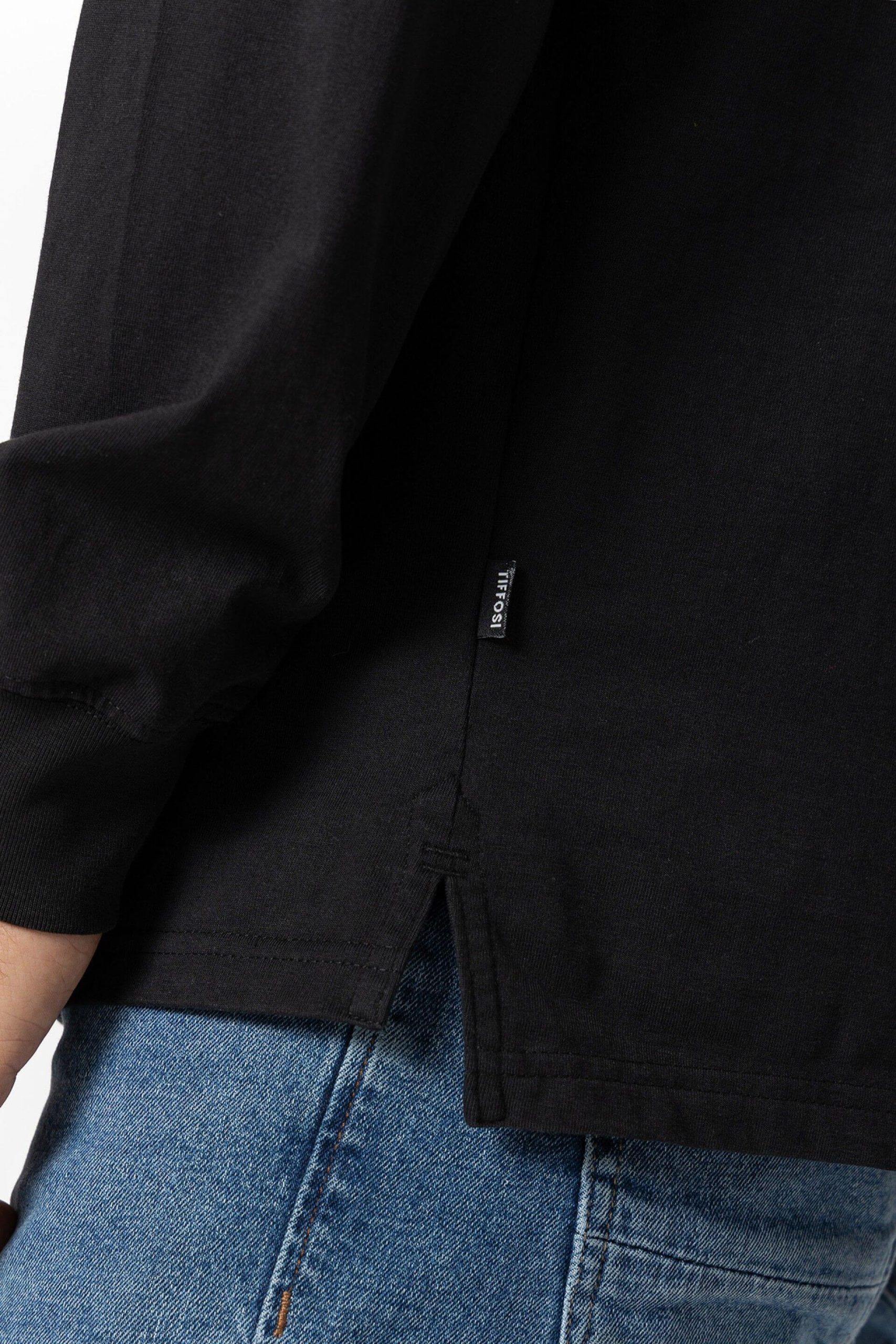 Conhecida por seu estilo urbano e design incomum, a Tiffosi incorpora detalhes inovadores. Combinados com silhuetas inspiradas em streetwear e uma estética jovial. Assim é esta t-shirt preta c/ manga comprida da Tiffosi. Tem manga comprida e decote redondo. Para parte de baixo combina na perfeição com jeans, mas dentro do mesmo estilo. O modelo está a vestir o M.