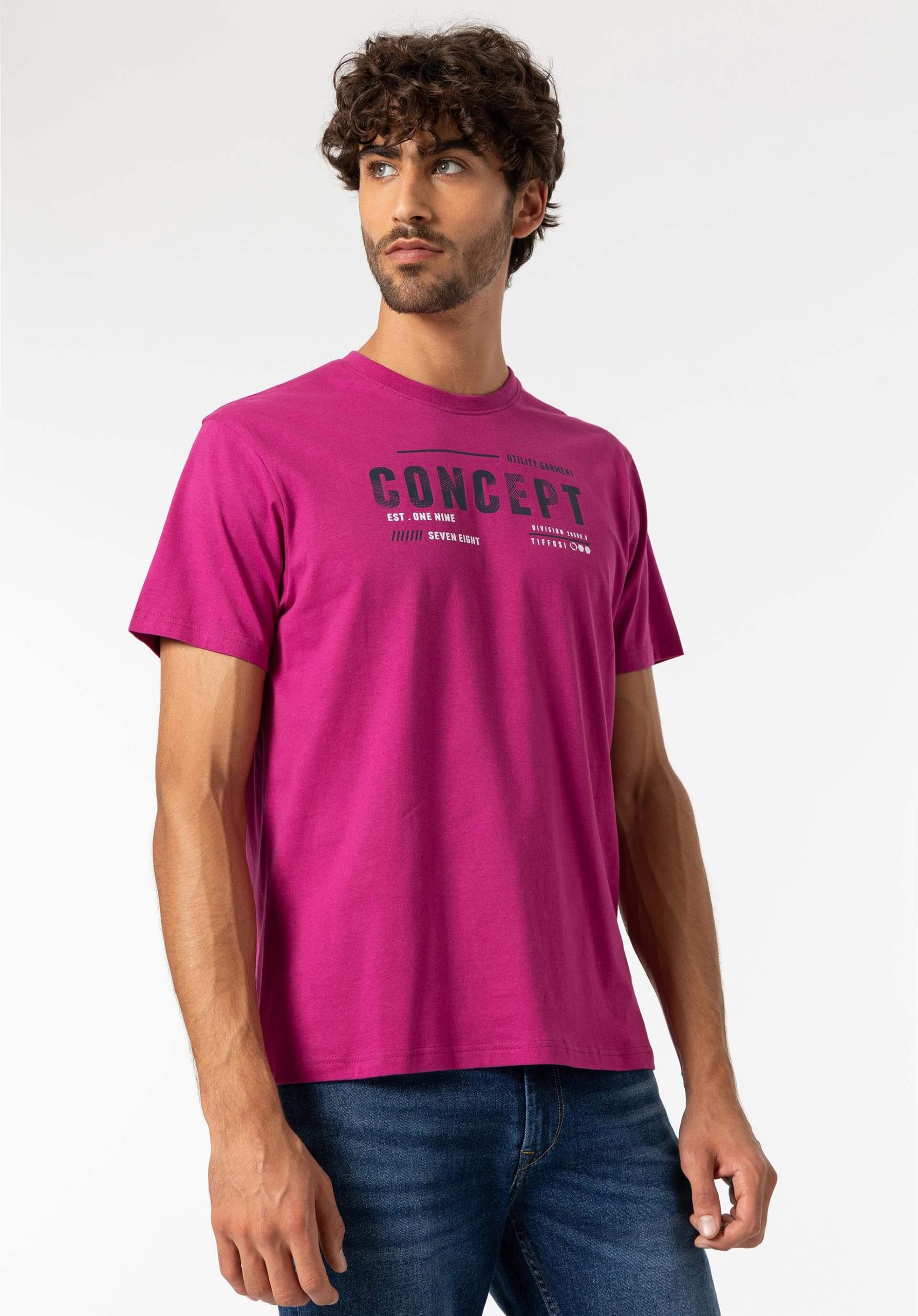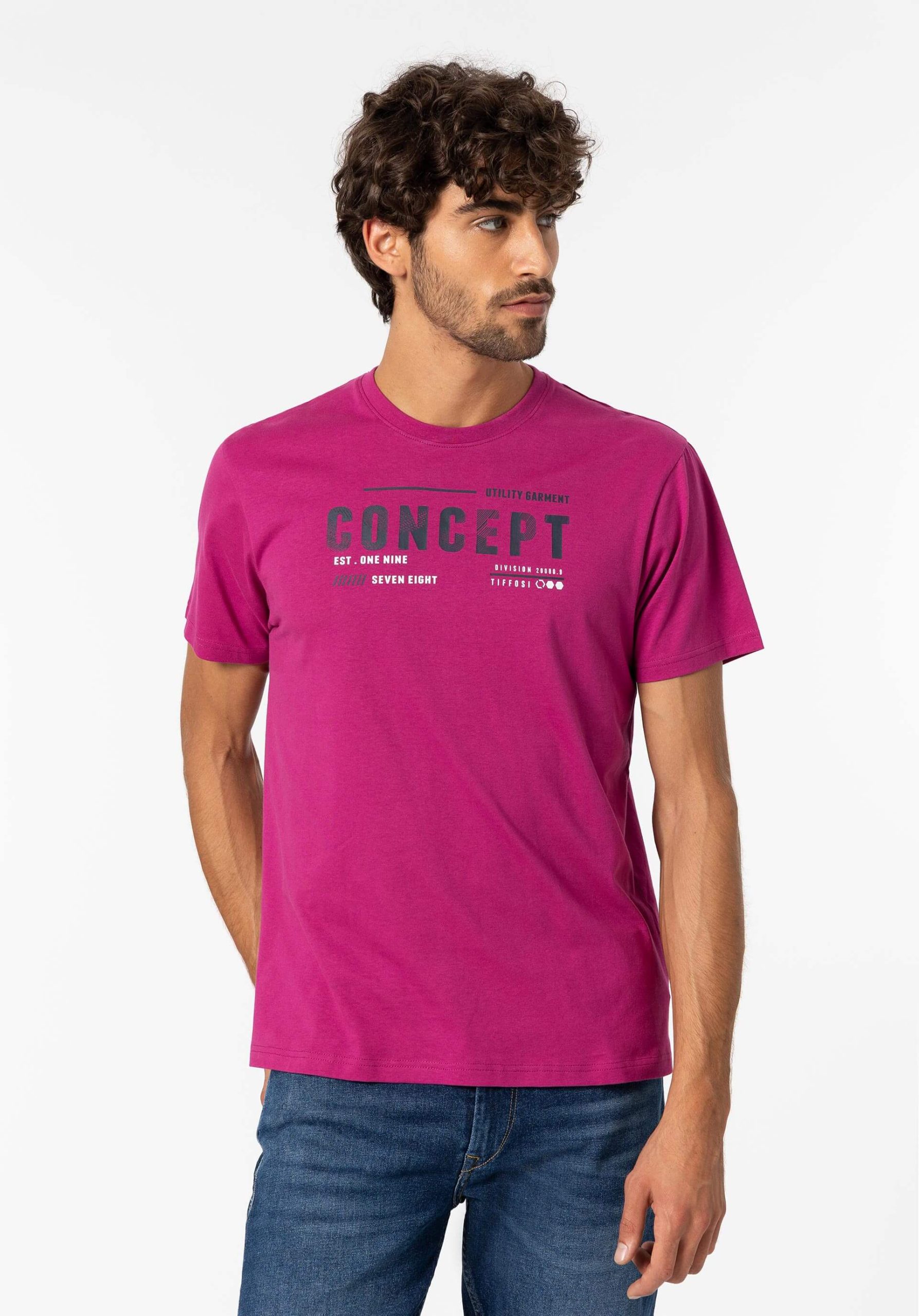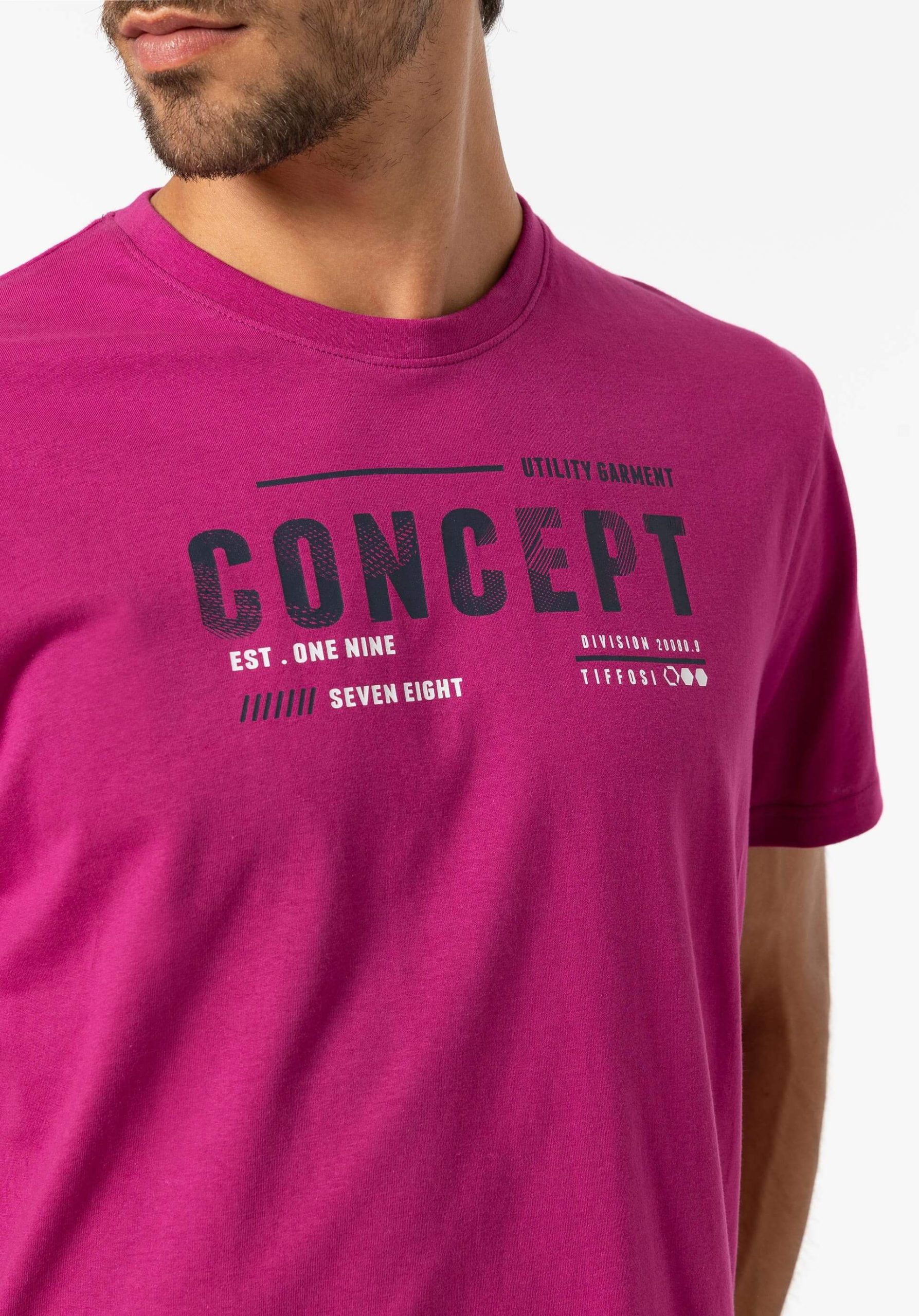 Conhecida por seu estilo urbano e design incomum, a Tiffosi incorpora detalhes inovadores. Combinados com silhuetas inspiradas em streetwear e uma estética jovial. Assim é esta t-shirt rosa concept da Tiffosi. Tem manga curta e decote redondo. Para parte de baixo combina na perfeição com jeans, mas dentro do mesmo estilo. O modelo está a vestir o M.