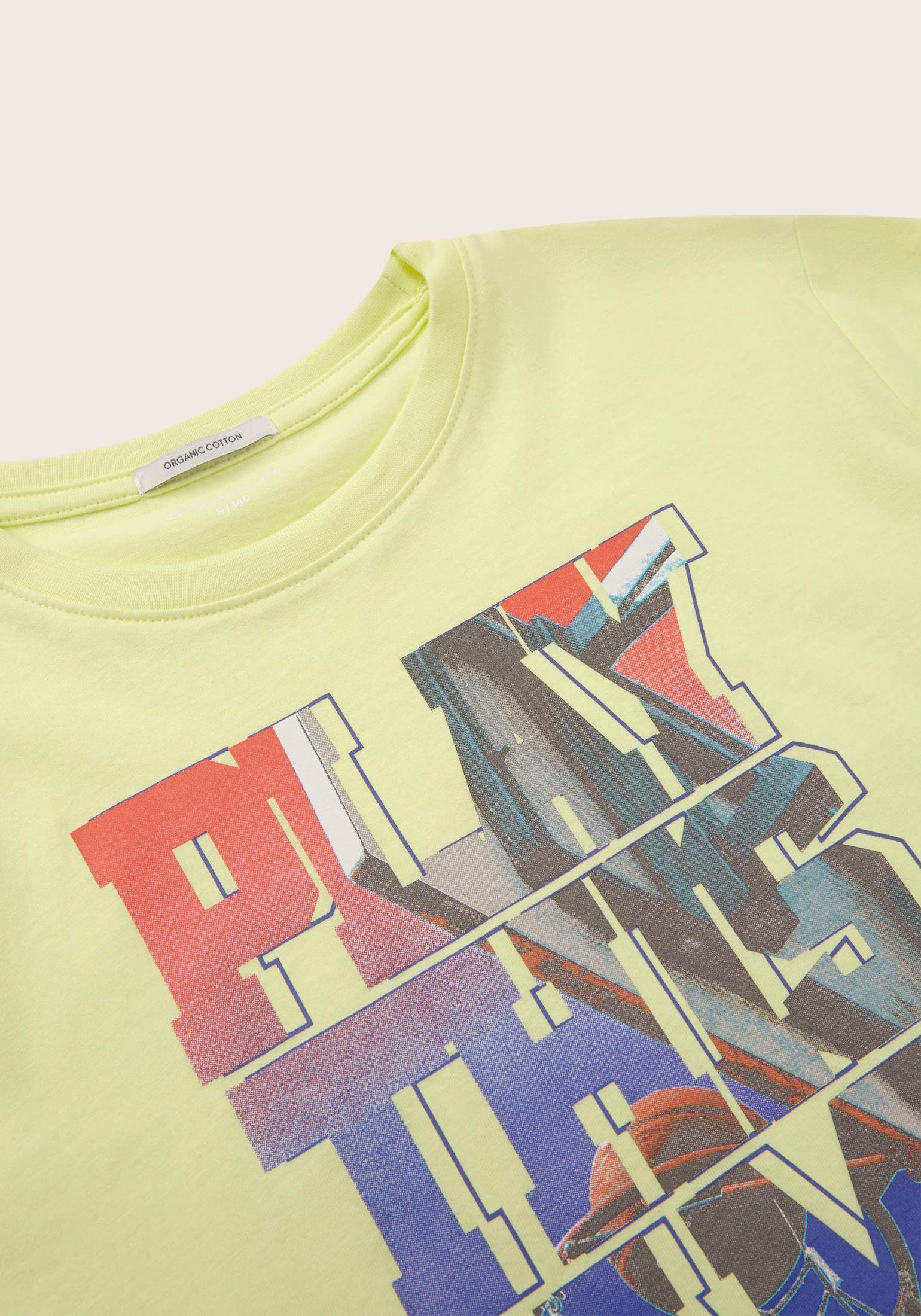 Conhecida por seu estilo urbano e design incomum, a Tom Tailor incorpora detalhes inovadores. Combinados com silhuetas inspiradas em streetwear e uma estética jovial. Assim é esta t-shirt verde lima c/ estampa da Tom Tailor. Tem decote redondo e manga curta. Para parte de baixo combina na perfeição com jeans, mas dentro do mesmo estilo. A imagem está no tamanho 9-10 anos / 140 cm.