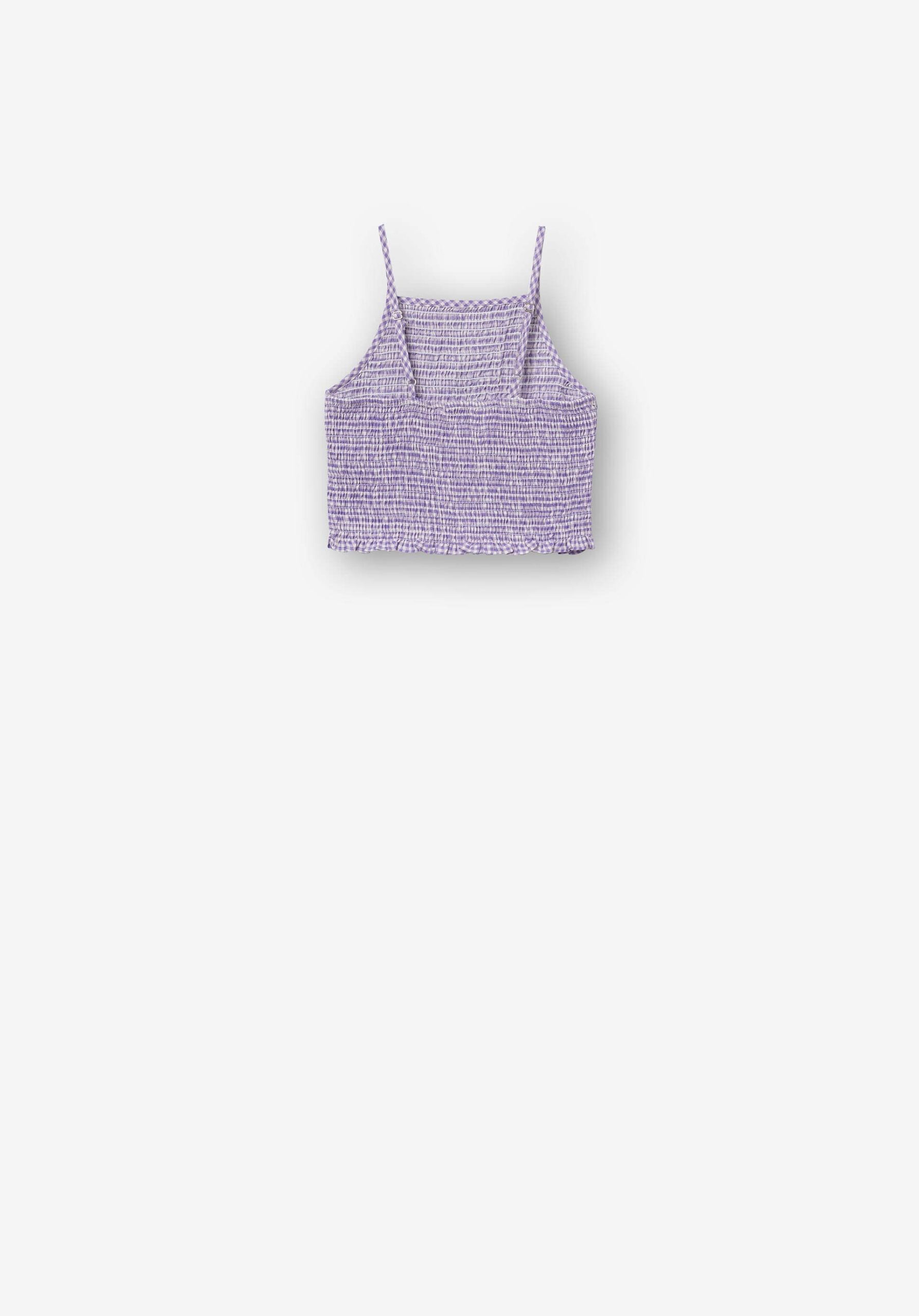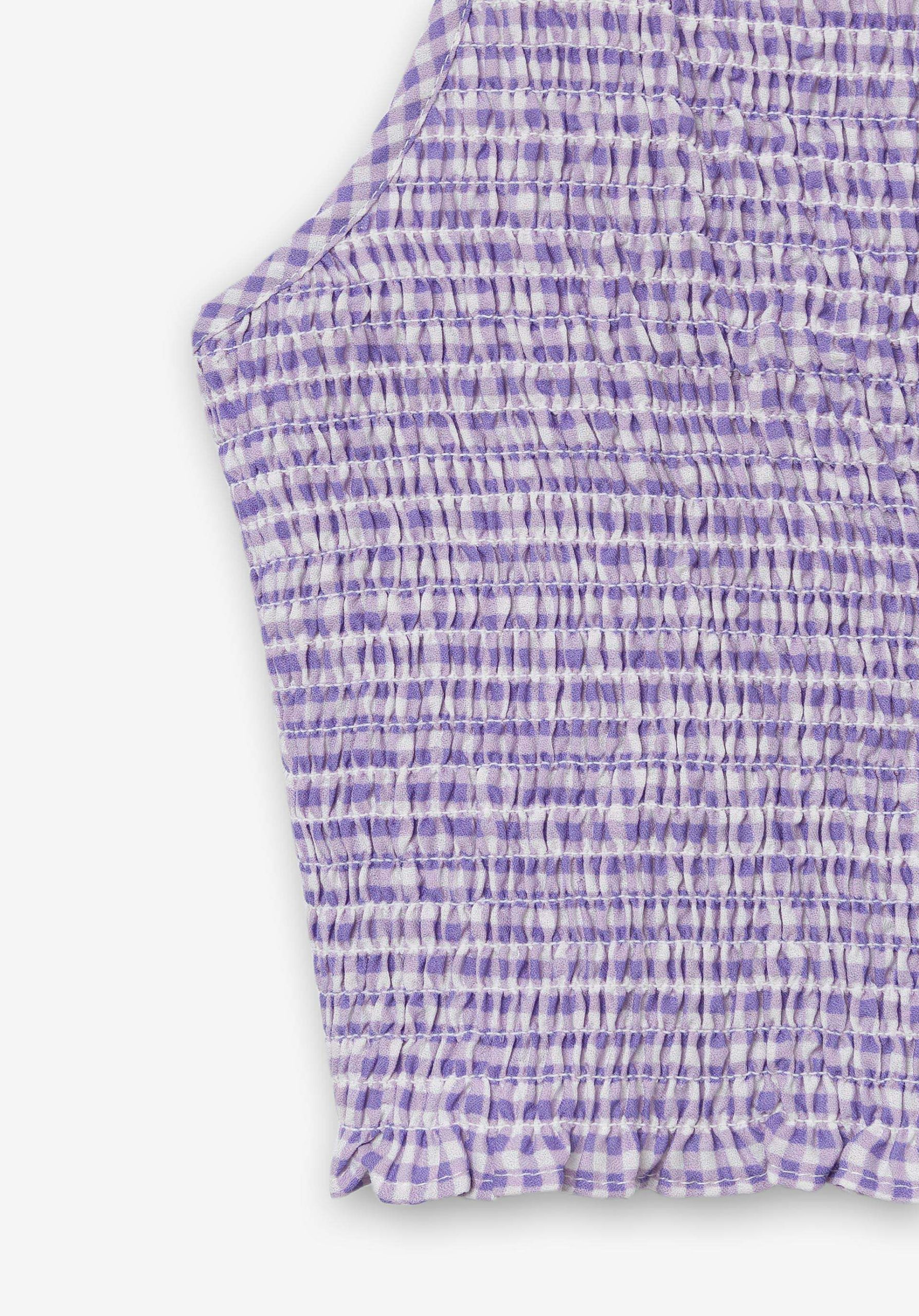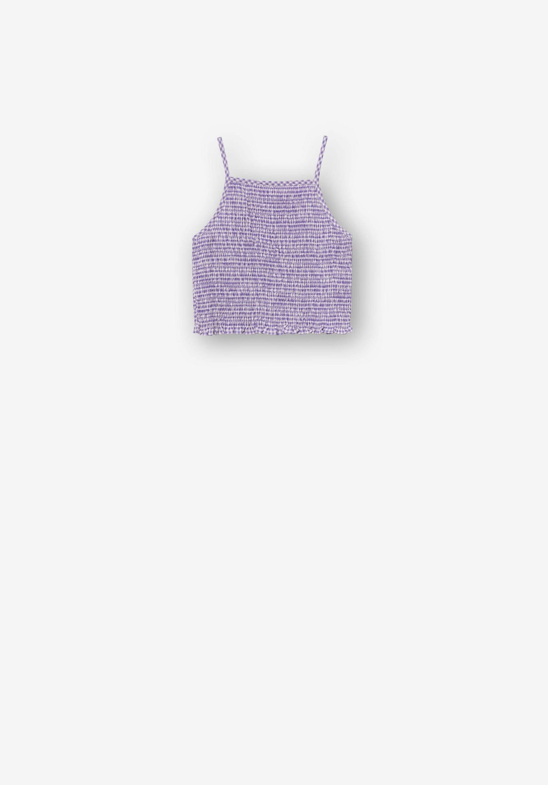Pense em silhuetas dos anos 80, denim super skinny e estampas de bandana. Pois bem essa era voltou aos dias de hoje. Assim é este top alças xadrez roxo da Tiffosi. Tem folho na bainha e alças ajustáveis. Para parte de baixo combina na perfeição com jeans mas a dar com o tom. A imagem está no tamanho 9-10 anos /140 cm.