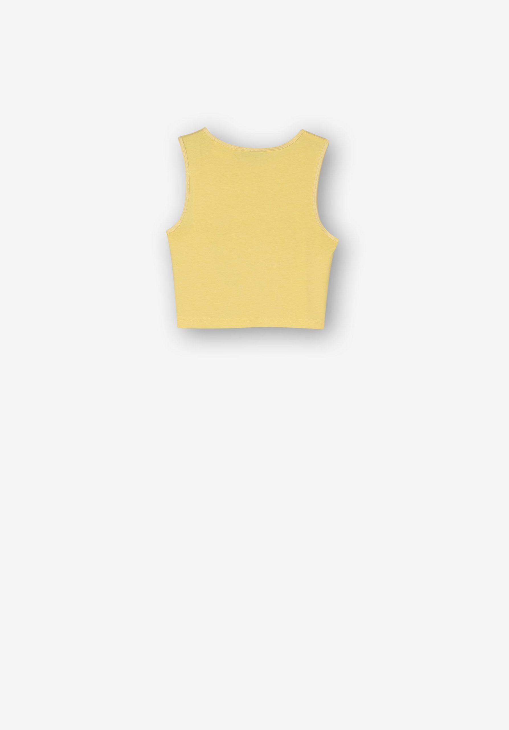 Pense em silhuetas dos anos 80, denim super skinny e estampas de bandana. Pois bem essa era voltou aos dias de hoje. Assim é este top amarelo smile da Tiffosi. Tem alça larga e decote redondo. Para parte de baixo combina na perfeição com jeans mas a dar com o tom. A imagem está no tamanho 9-10 anos /140 cm.