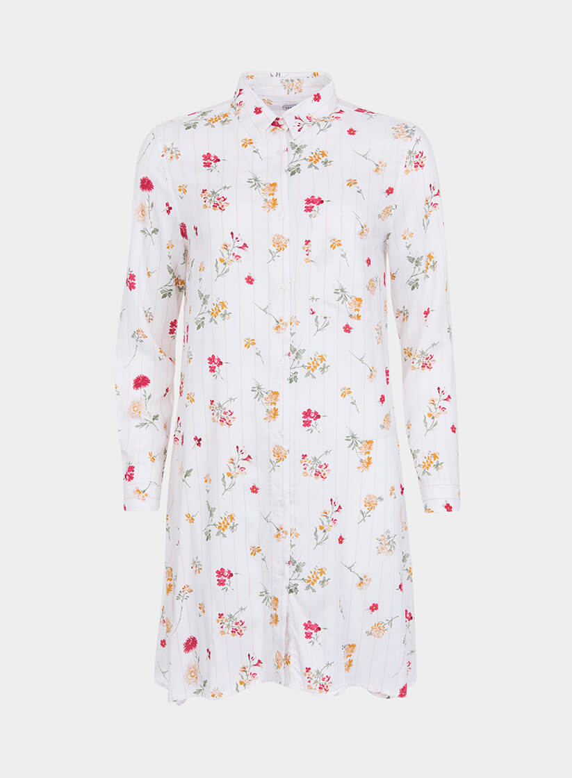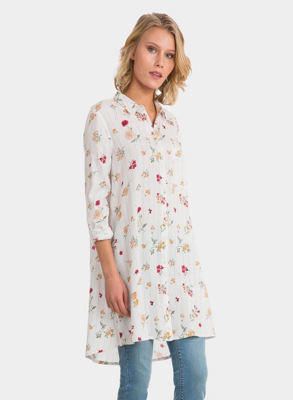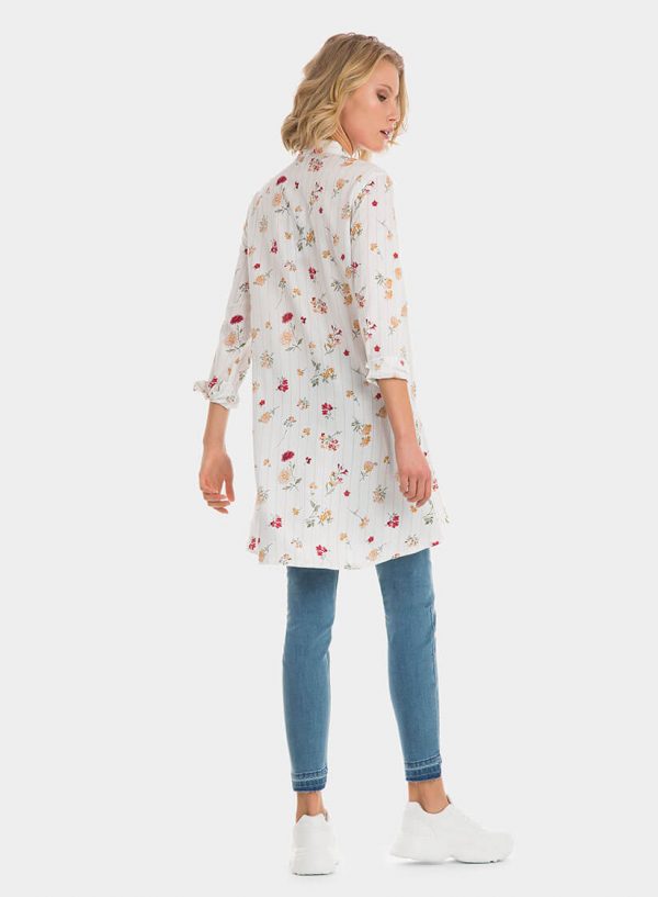 Conhecida por seu estilo urbano e design incomum, a Tiffosi incorpora detalhes inovadores. Combinados com silhuetas inspiradas em streetwear e uma estética jovial. A marca foi lançada em 1981 e oferece produtos de qualidade a preços acessíveis, que contam histórias e inspiram um estilo de vida. Assim é esta túnica comprida com print floral da Tiffosi em viscose. Apresenta mangas comprida com punhos de botão, gola de bico e bolso de chapa na frente do lado esquerdo. Tem pestana na frente com botões. Para parte de baixo combina na perfeição com jeans, mas dentro do mesmo estilo. A modelo está a vestir o tamanho S.