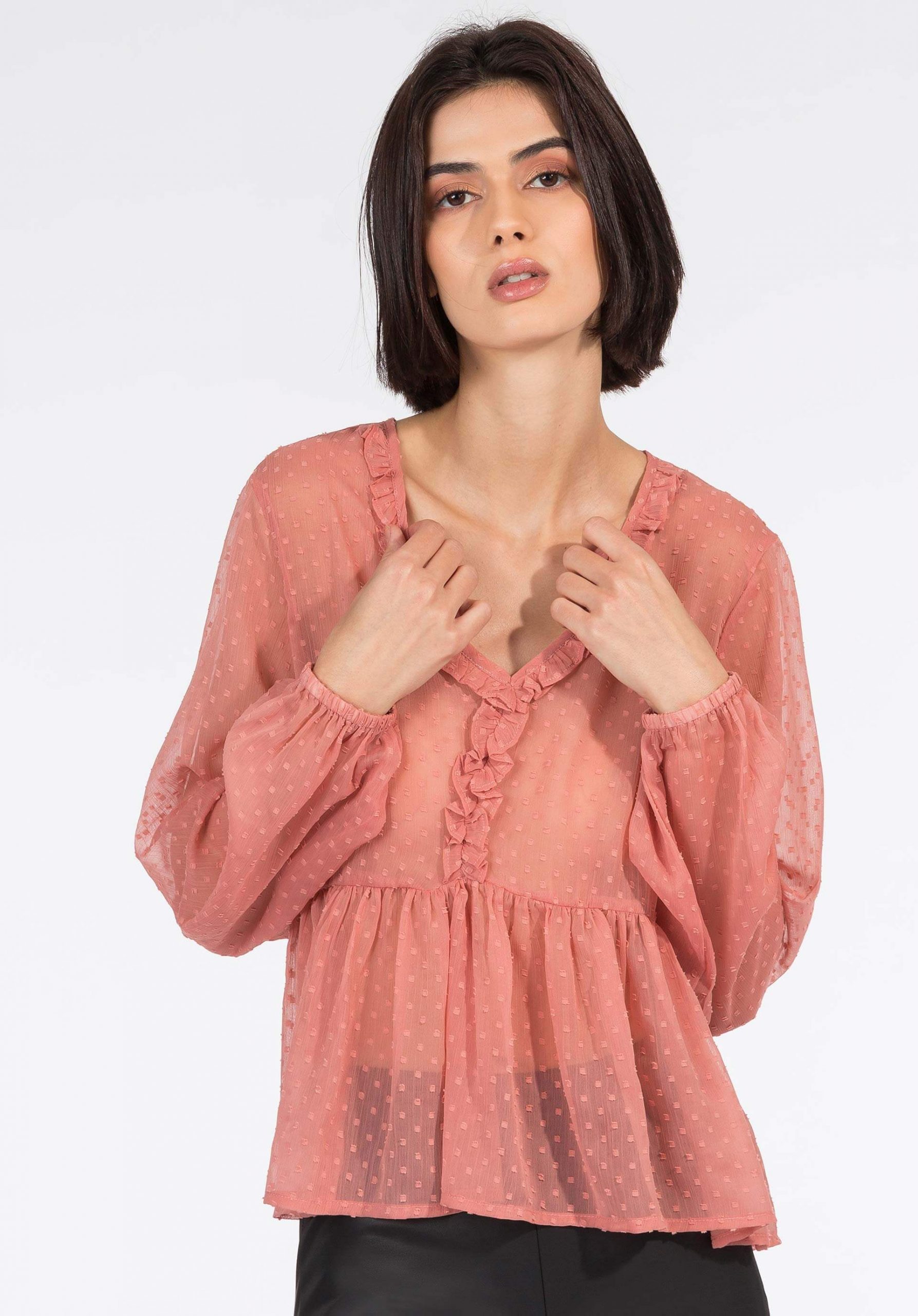 Conhecida por seu estilo urbano e design incomum, a Tiffosi incorpora detalhes inovadores. Combinados com silhuetas inspiradas em streetwear e uma estética jovial. Assim é esta túnica rosa c/folho no decote da Tiffosi. Tem manga comprida com elástico no punho e decote em bico. Para parte de baixo combina na perfeição com jeans, mas dentro do mesmo estilo. A modelo está a vestir o S.
