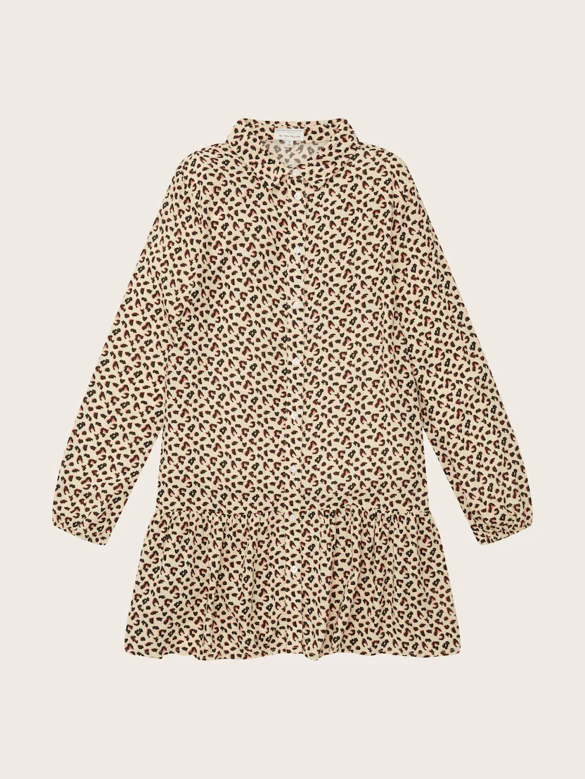 Pense em silhuetas dos anos 80, painéis pesados, denim super skinny e estampas de bandana. Pois bem essa era voltou aos dias de hoje. Conhecida por seu estilo urbano e design incomum, a Tom Tailor incorpora detalhes nativos holandeses. Assim é este vestido c/ print tigresa da Tom Tailor. Tem gola, botçoes e manga comprida. Para parte de cima combina na perfeição com casaco mas a dar com o tom. A imagem está no tamanho 9-10 anos /140 cm.