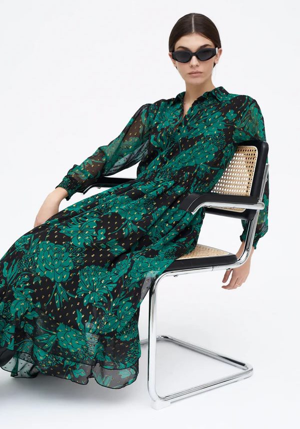 Pense em silhuetas que exalam elegância atemporal, transbordam de funcionalidade, conforto e elegância sutil. Pois bem essa era voltou aos dias de hoje. Assim é este vestido comprido c/ estampado wild flower da Wild Pony. Apresenta decote redondo com abertura e manga comprida. Para parte de baixo combina na perfeição com casaco mas a dar com o tom. A manequim está a vestir o tamanho S.