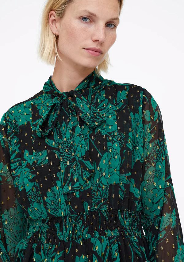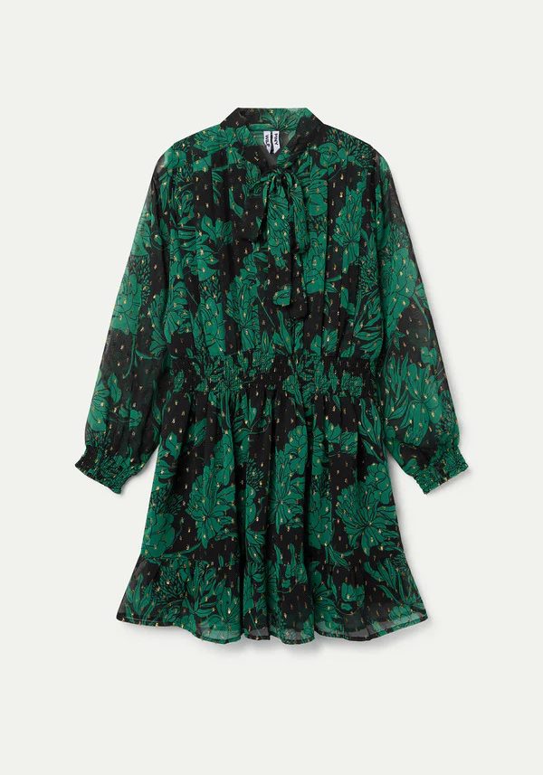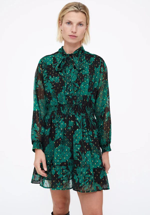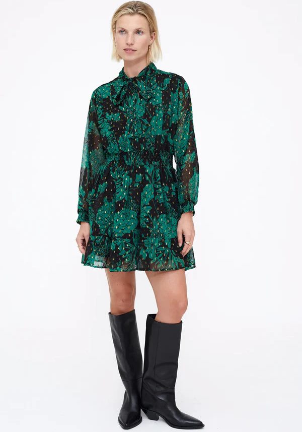 Pense em silhuetas que exalam elegância atemporal, transbordam de funcionalidade, conforto e elegância sutil. Pois bem essa era voltou aos dias de hoje. Assim é este vestido curto c/ estampado wild flower da Wild Pony. Apresenta decote redondo com laço e manga comprida. Para parte de baixo combina na perfeição com casaco mas a dar com o tom. A manequim está a vestir o tamanho S.