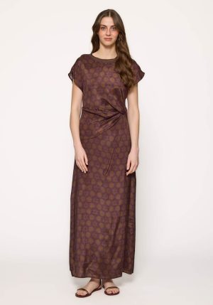 Vestido comprido castanho c/ apanhado
