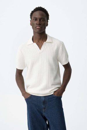 Polo branco em malha estruturada